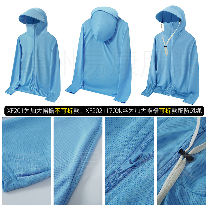 ❷andXF201 has a non-detachable brim, while XF202 comes with a detachable windproof drawstring, and the fabric is as shown in the below blue image."↓。