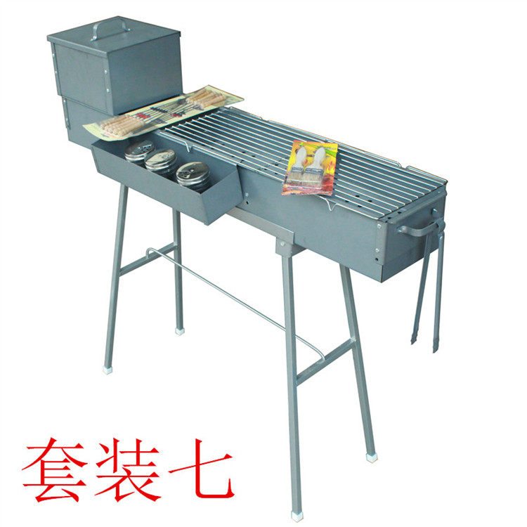 Set 7: 100-long electroplated oven for 80 yuan + folding stand for 40 yuan + 60-long straight bar mesh for 16 yuan + matching oven head for 30 yuan + 10-piece set of stainless steel handle needles for 6 yuan + commercial seasoning box for 30 yuan + 3 large seasoning cans for 19.5 yuan + pig bristle brush for 4.5 yuan + carbon clamps for 3 yuan = 229 yuan. As shown in the figure.