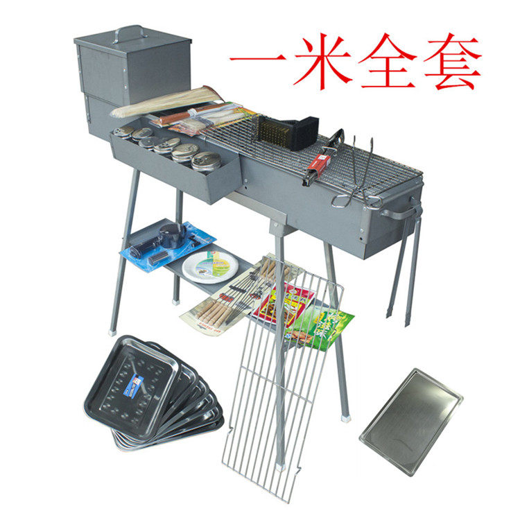 One meter complete set: 80 yuan for the 100-long plating furnace + 40 yuan for the folding stand + 15 yuan for the storage board + 16 yuan for the 60-long straight mesh + 15 yuan for the 50-long stainless steel fine mesh + 15 yuan for the matching grill pan + 6 yuan for the four burger clamps + 4 yuan for the grill clamps + 3 yuan for the food clamps + 3 yuan for the charcoal clamps + 30 yuan for the commercial seasoning box B + 19.5 yuan for the large seasoning box 3 + 12 yuan for the small seasoning box 3 + 4 yuan for the marinade for grilling + 4 yuan for the seasoning for grilling + 4.5 yuan for the pig bristle brush + 2.5 yuan for the bamboo skewers + 5 yuan for the grill knife + 30 yuan for the matching stove head + 7 yuan for the right-angle cleaning brush + 4 yuan for the disposable paper plates + 6 yuan for the set of ten with handle round grill needles + 36 yuan for the square dish plate 6 + 8 yuan for the manual blower = 369 yuan. As shown in the figure.