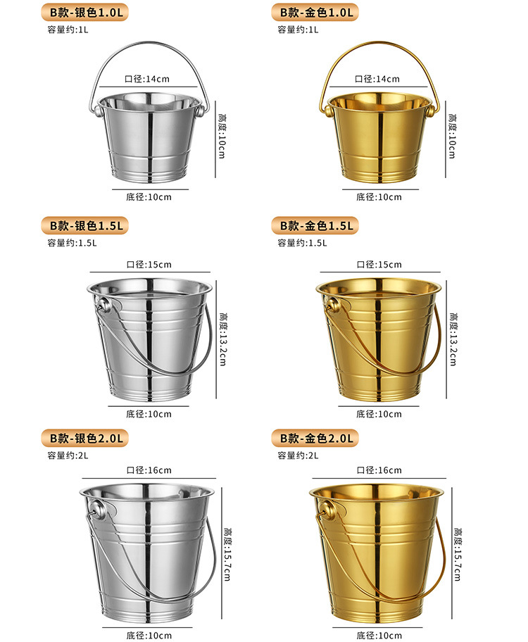 thick 304 stainless steel ice bucket [gold] 1.7l