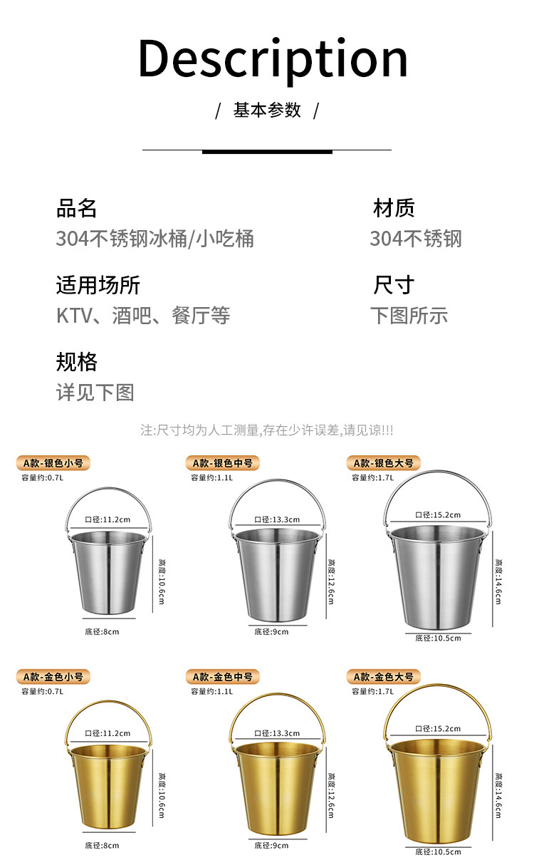 thick 304 stainless steel ice bucket [gold] 0.7l with logo