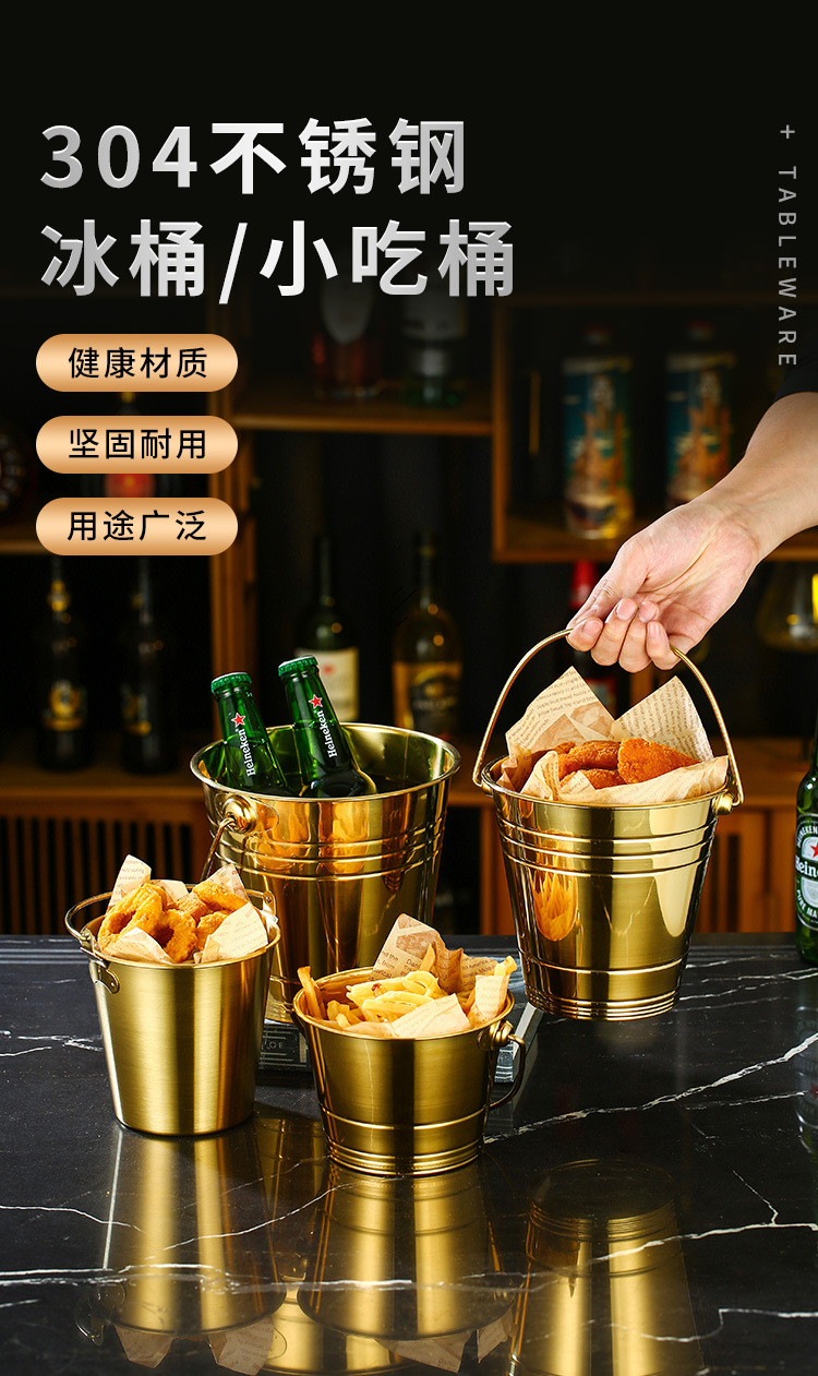 thick 304 stainless steel ice bucket [gold] 0.7l