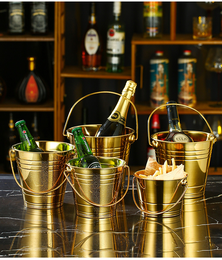 thick 304 stainless steel ice bucket [gold] 1.1l with logo