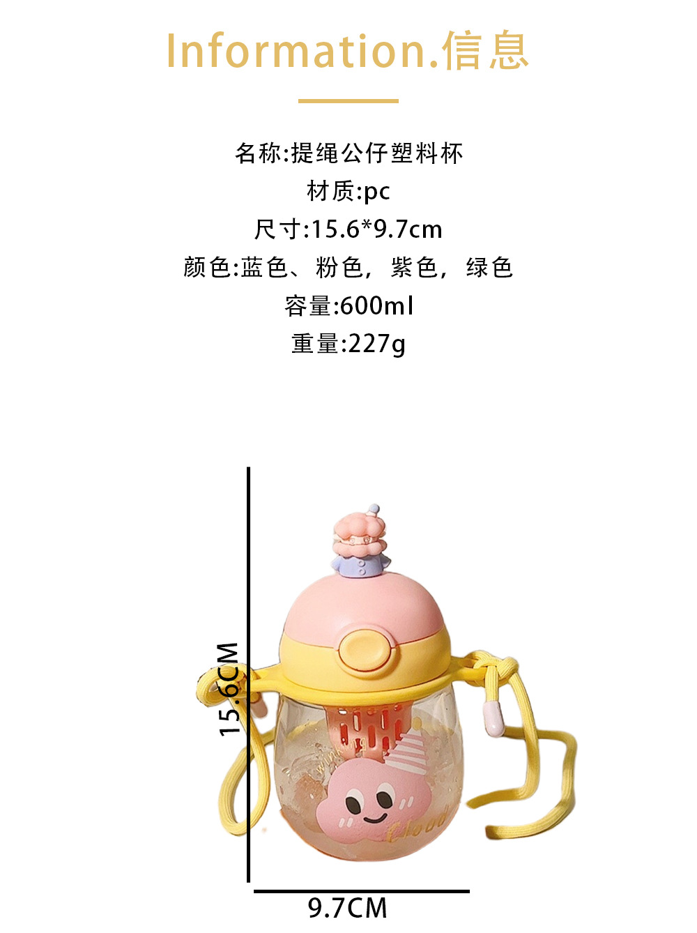 summer children's new plastic cup girls' cute big belly doll straw cup student portable good-looking cup