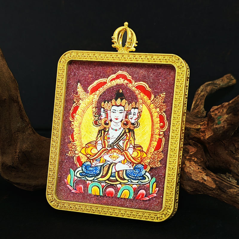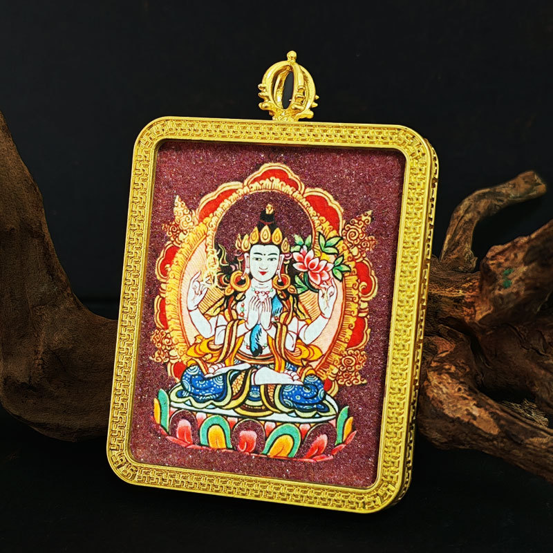 four-armed avalokiteshvara-rat [5x4 alloy cinnabar thangka]