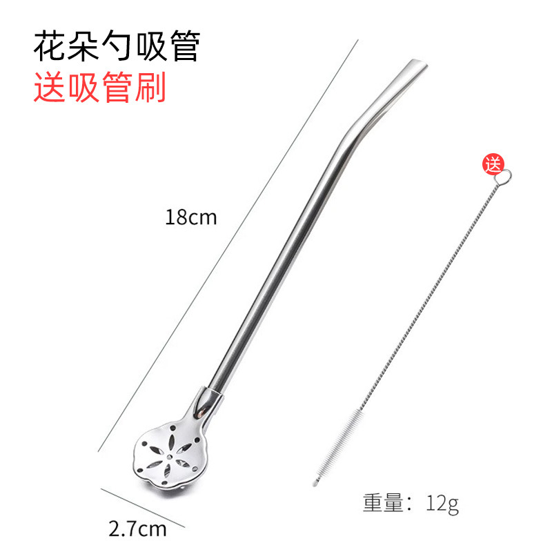 flower spoon straw★304 stainless steel (detachable-with straw brush)