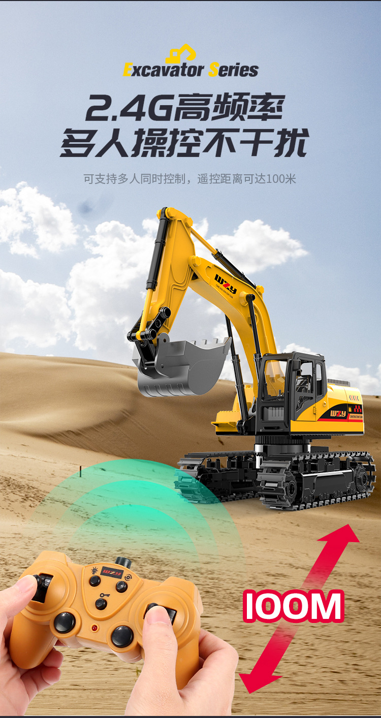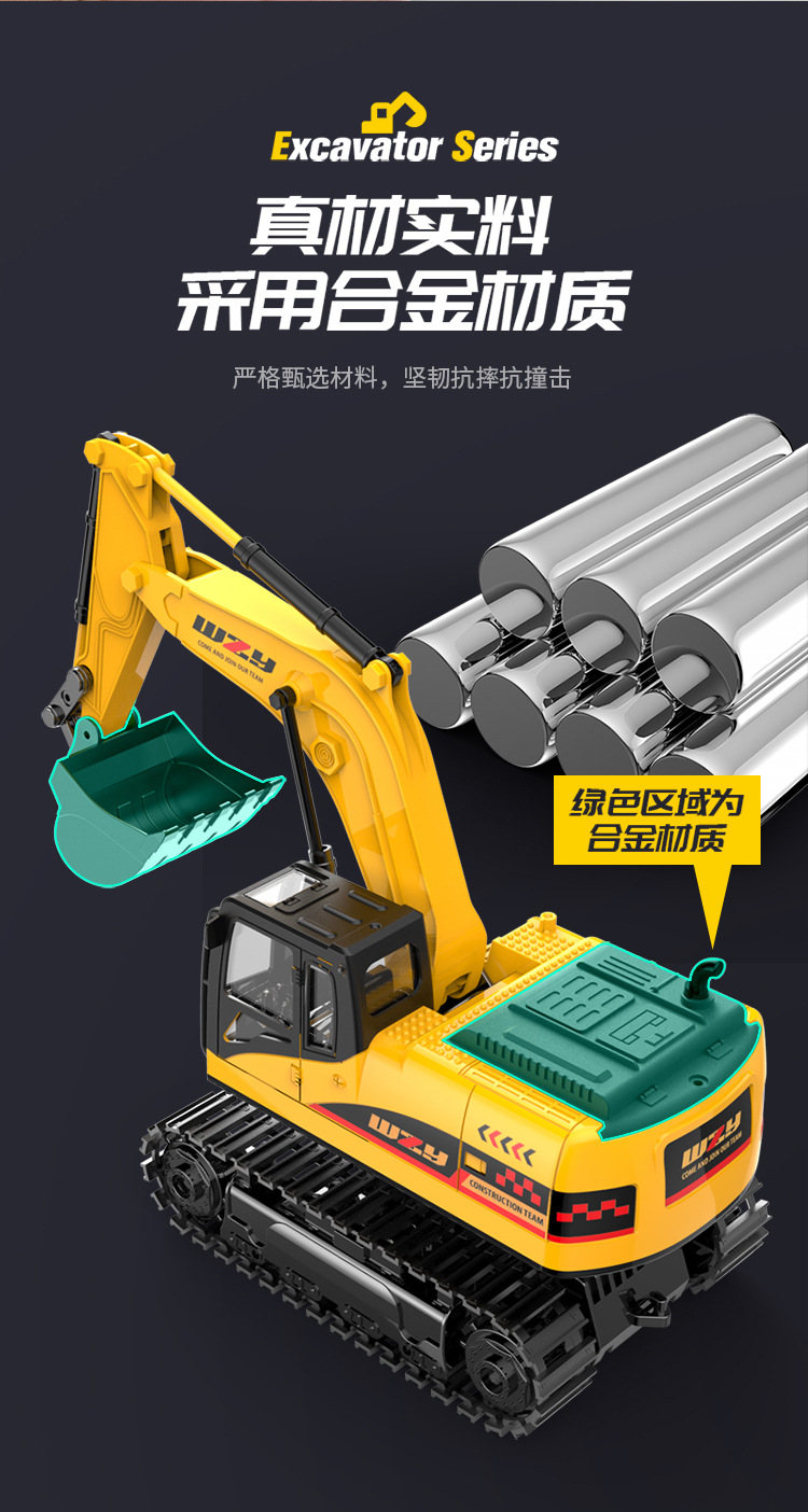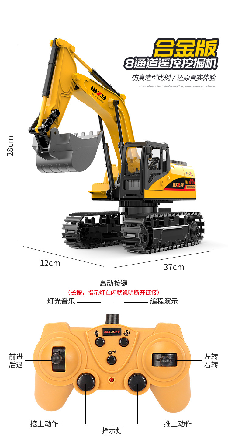 11-channel alloy remote-controlled excavator, 1 battery set