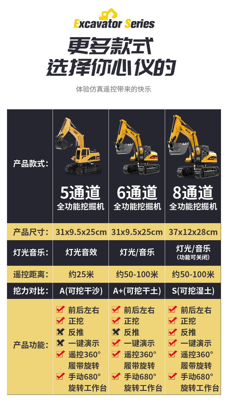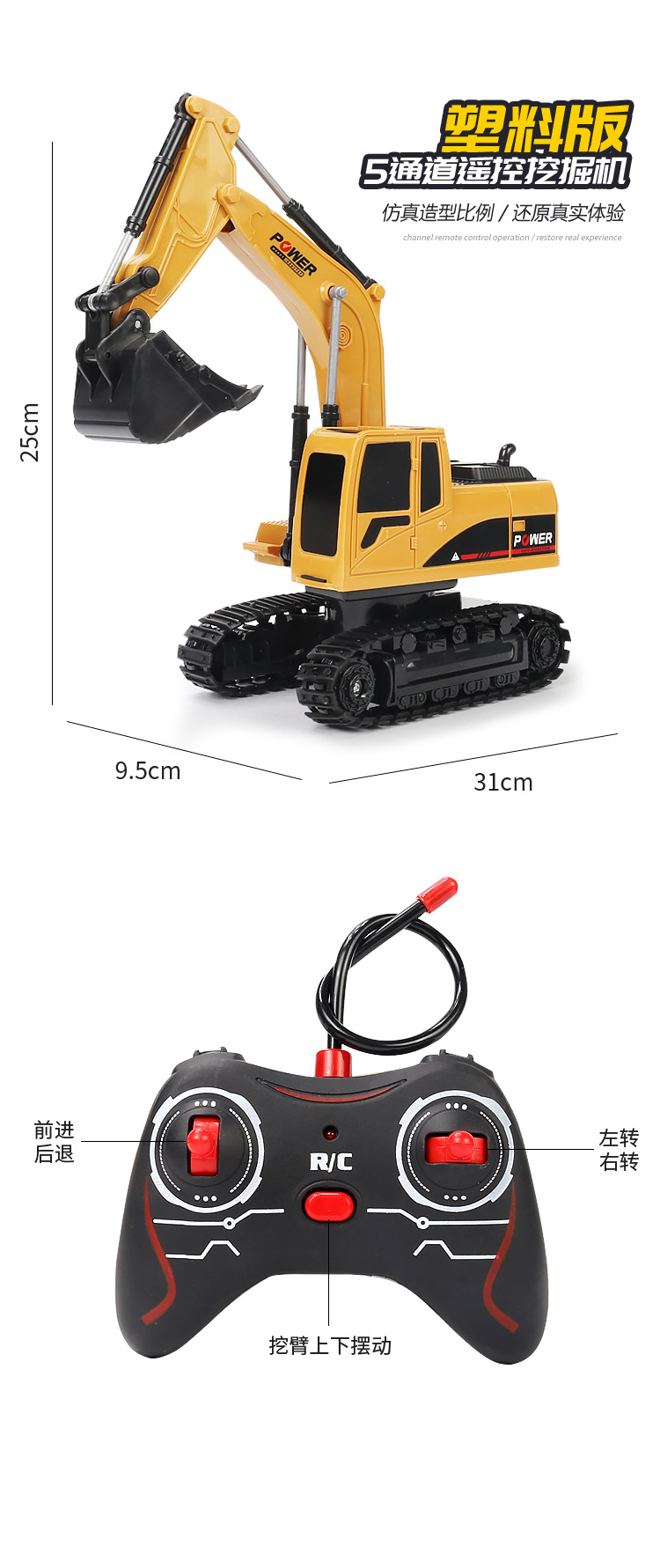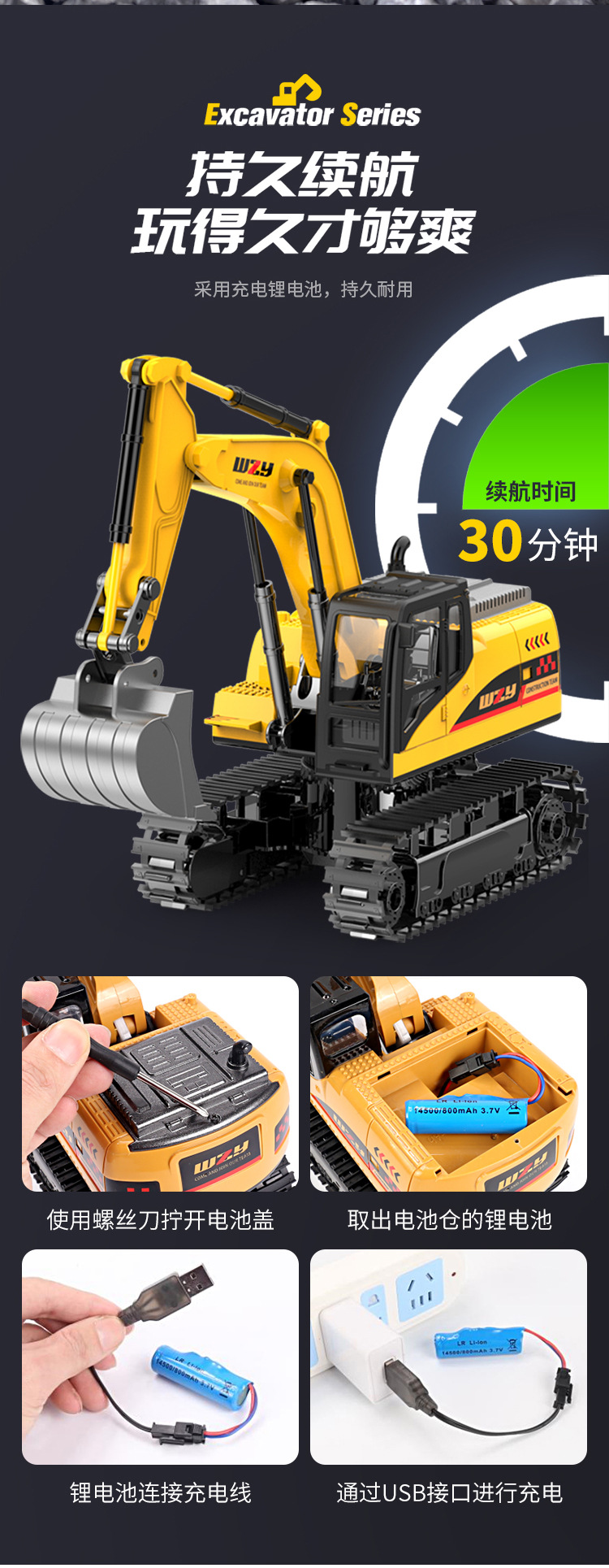 11-channel alloy remote-controlled excavator, 1 battery set