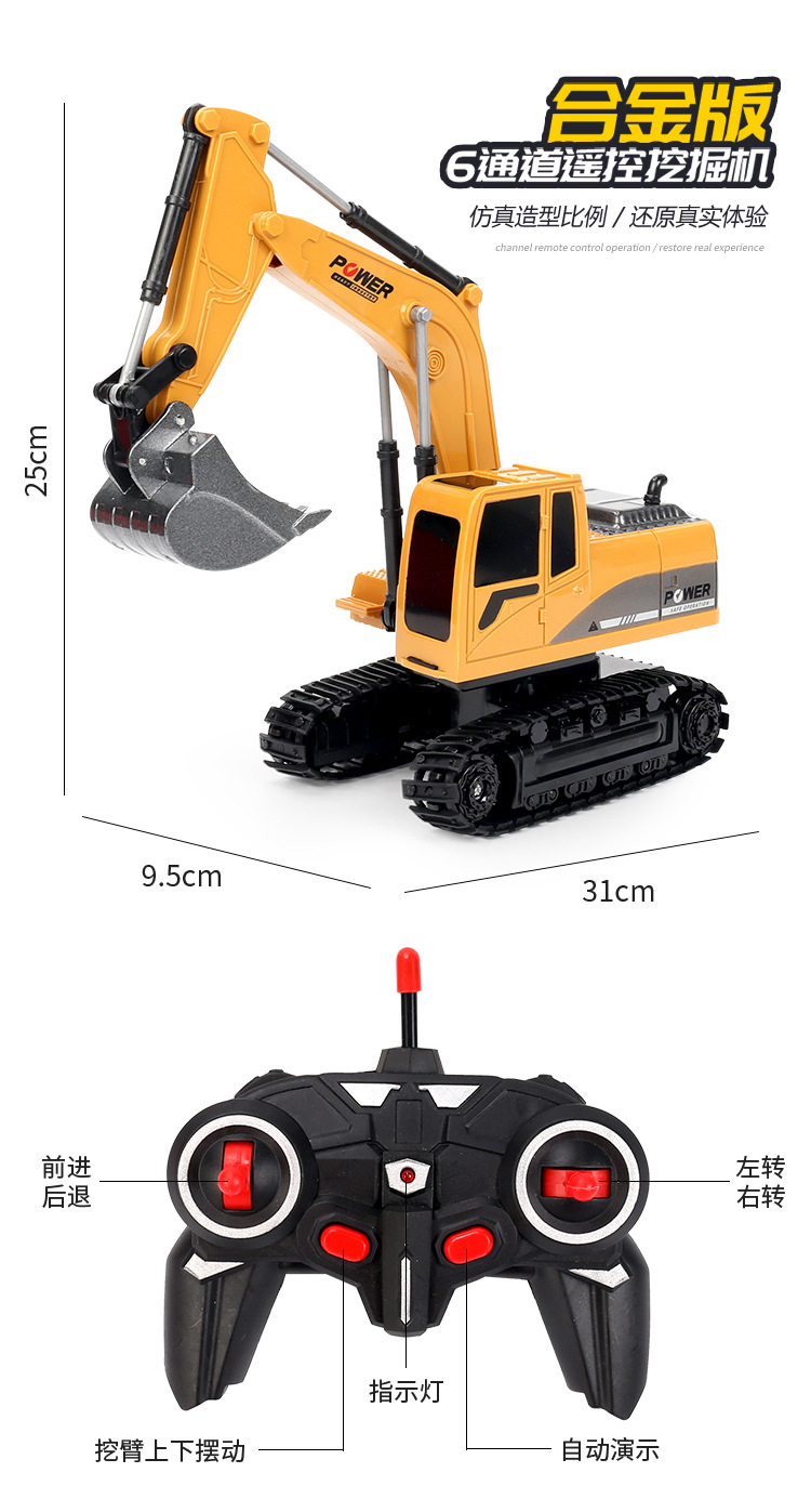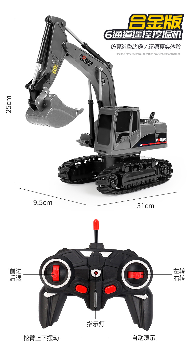 6-channel alloy remote-controlled excavator, 1 battery set