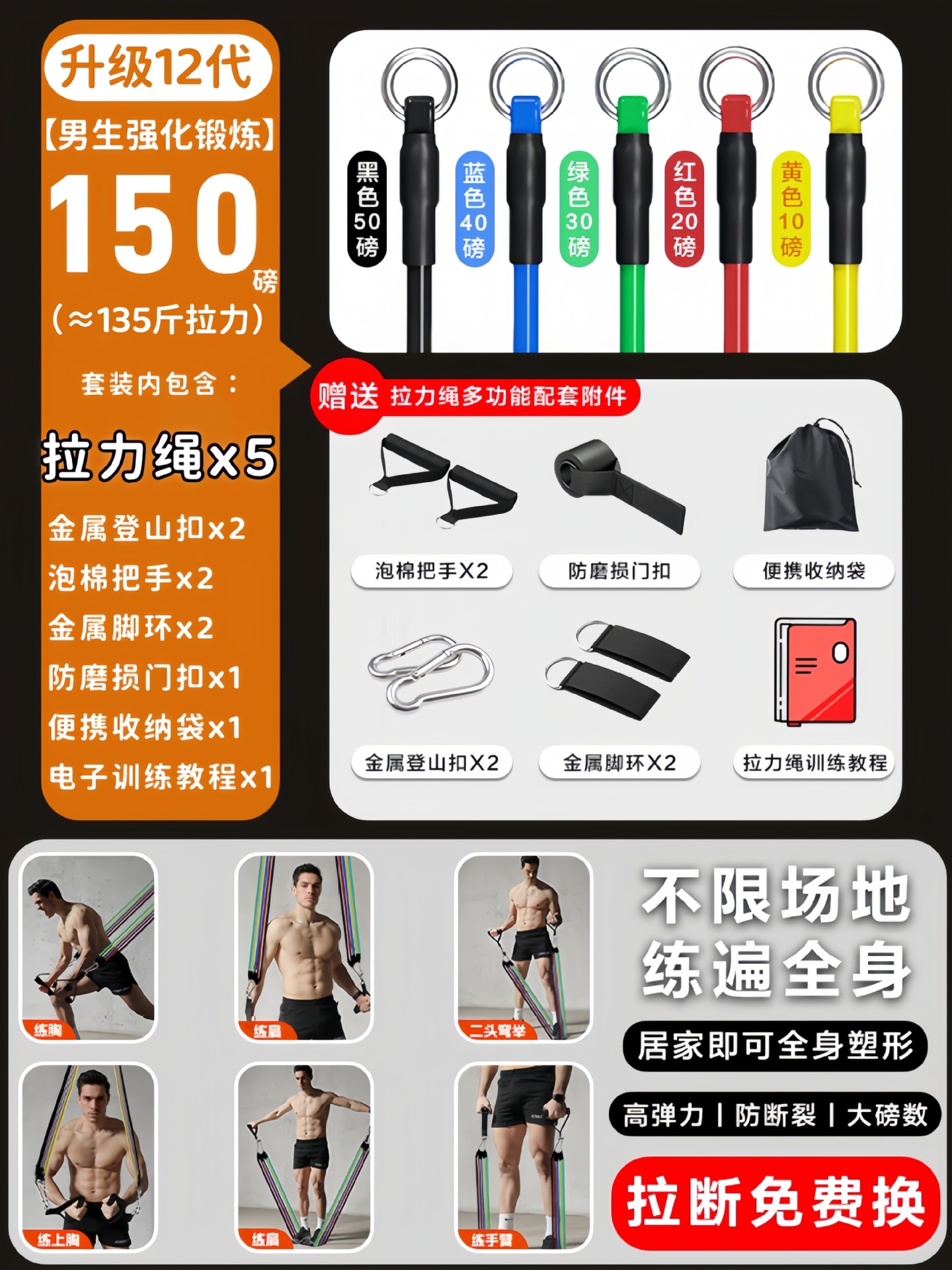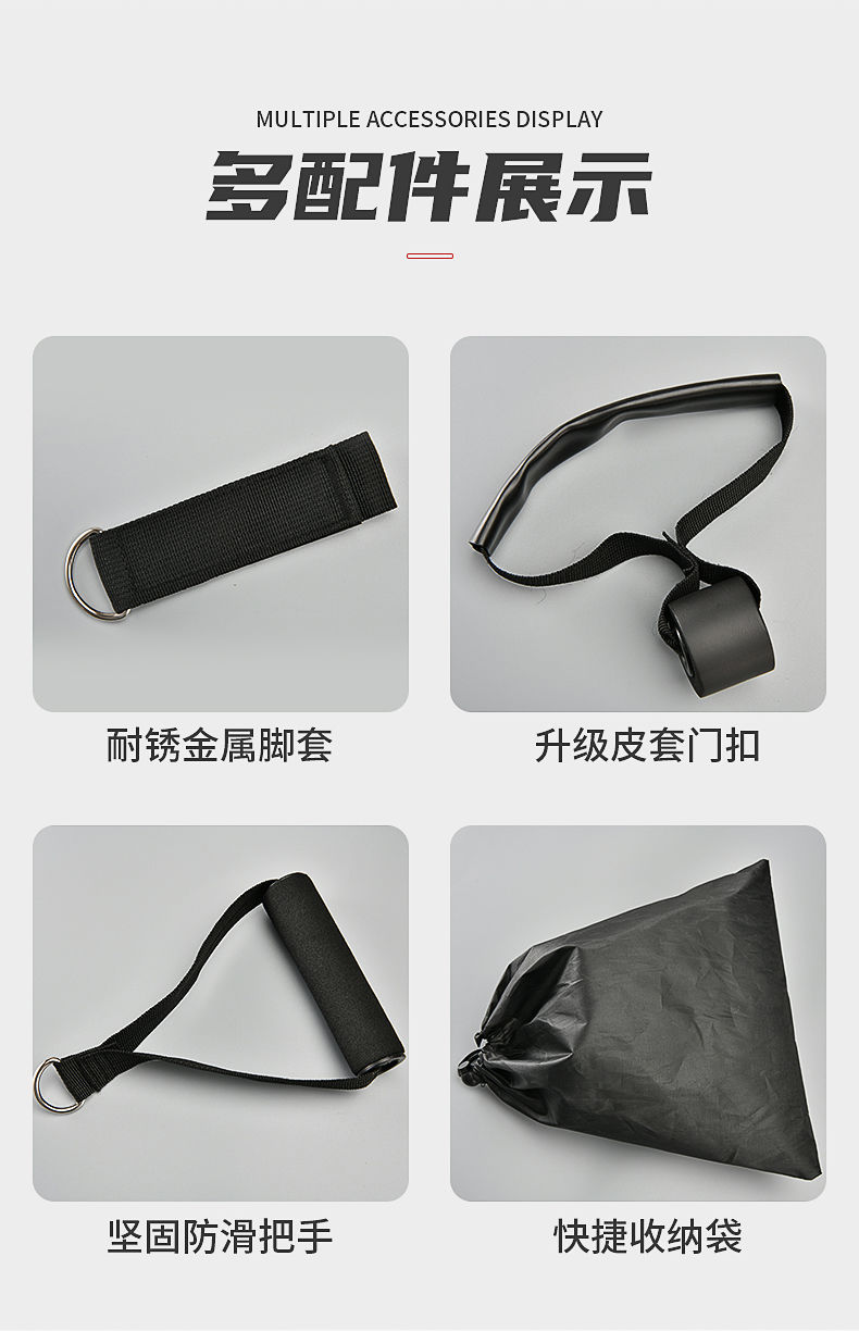[5 ropes/about 150 pounds of tension] multi-functional supporting accessories and training tutorials are provided.