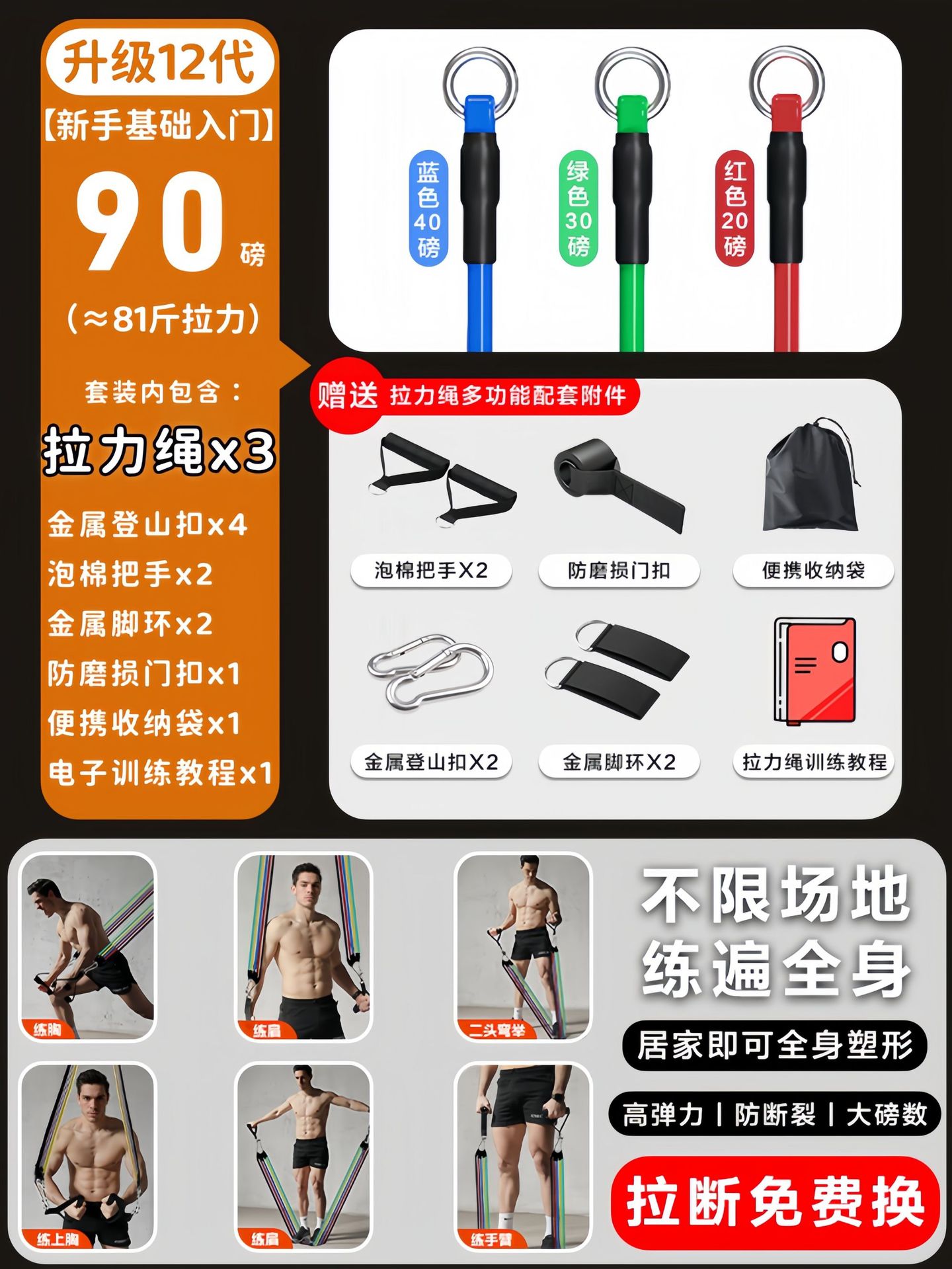 [3 ropes/approx. 90 lbs of resistance] includes a set of multi-functional accessories and a training guide as a gift.