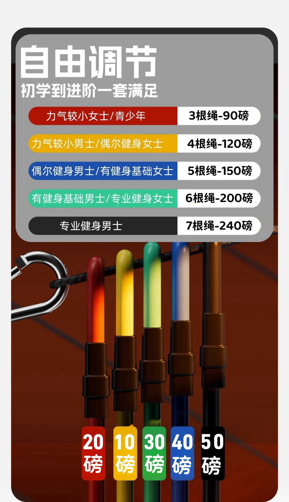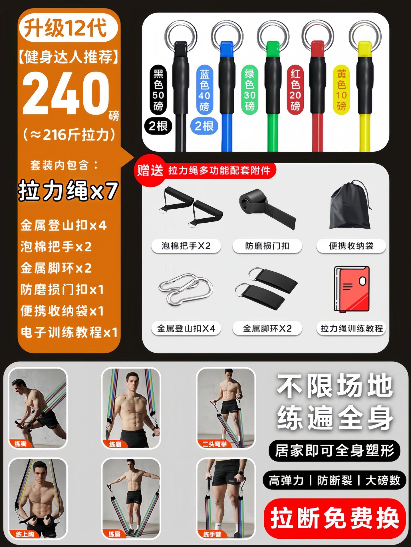 [7 ropes/about 240 pounds of tension] multi-functional supporting accessories and training tutorials are provided.