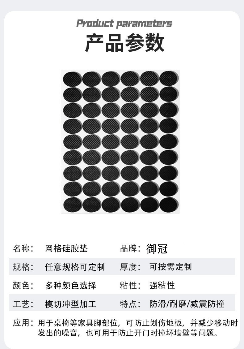 Grid Silicone Anti-skid Pad Shock Absorbing Pad Backing Adhesive Self-adhesive Furniture Chair Electrical Appliance Foot Pad Wear-resistant Grid Silicone Pad