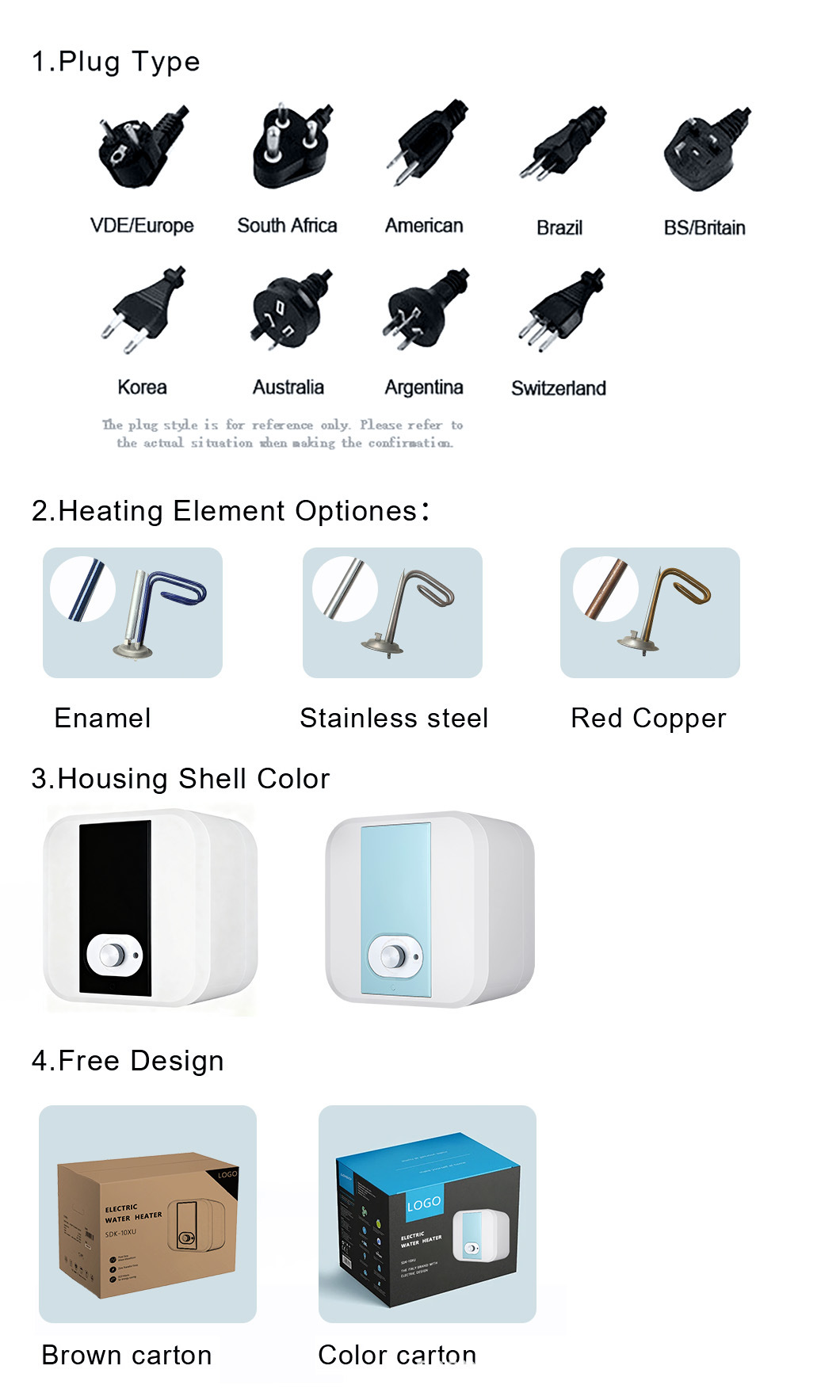 Note: All products in the store are export-customized electric water heaters. The price is calculated based on the custom requirements, not a fixed price. Sample production time and large-scale production cycle details, please contact the customer service. Quantity discounts are available!