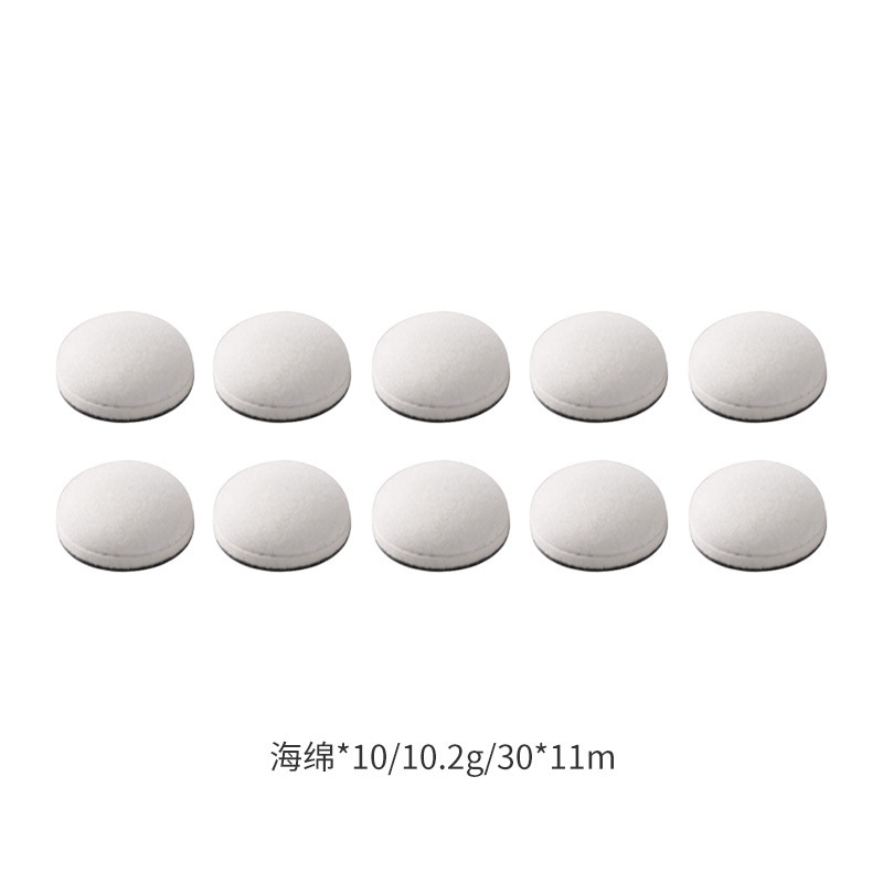 ten flat, round sponges