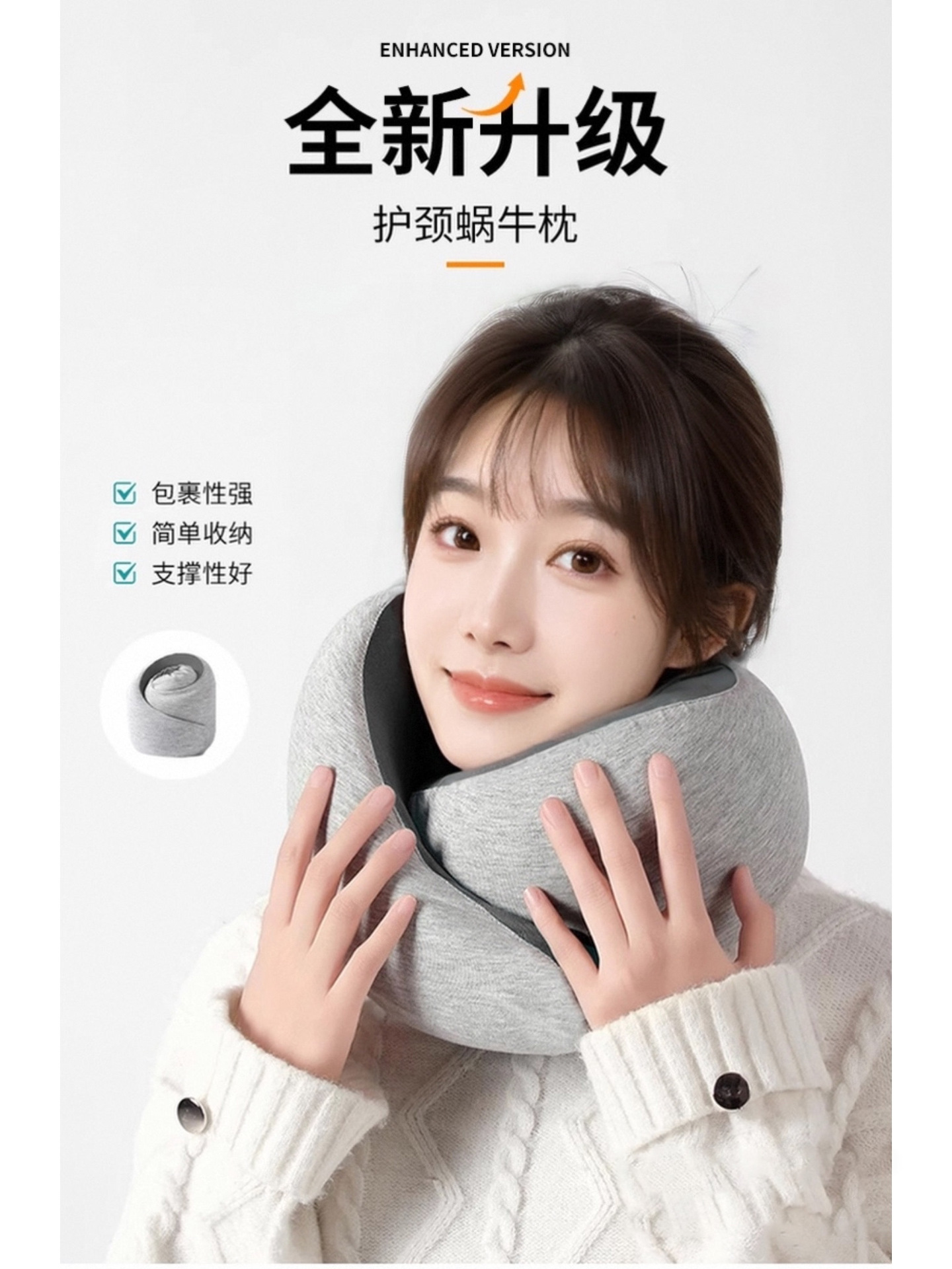 neck snail pillow [gray] soft and comfortable + premium original buggy bag