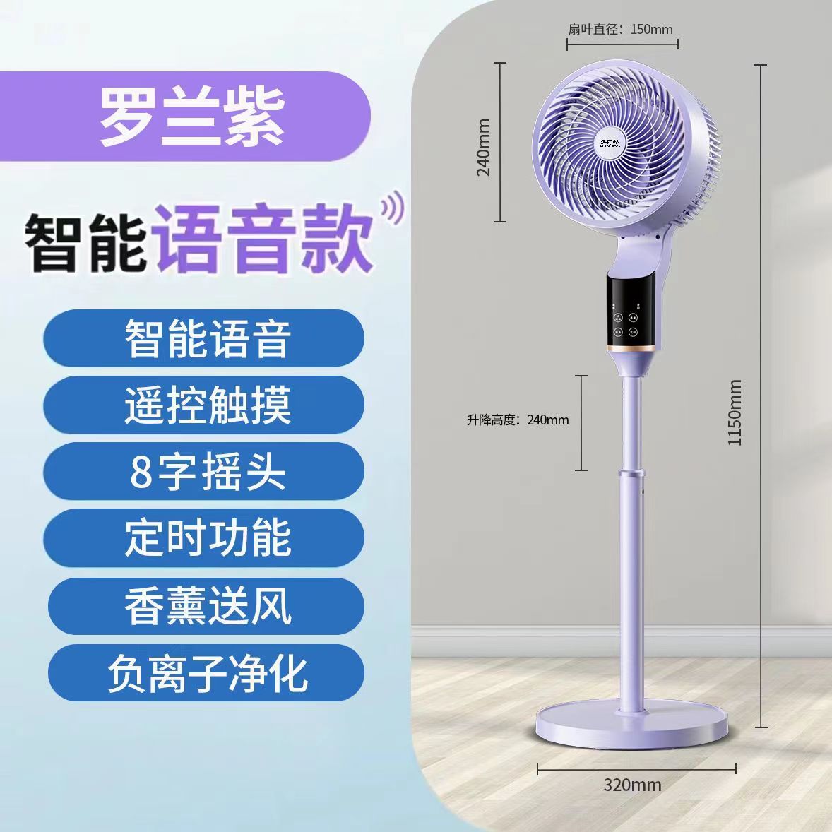 【purple smart】interactive voice response + free remote control + 1.1-meter height extension + antibacterial fan blades + 8-character head shaking