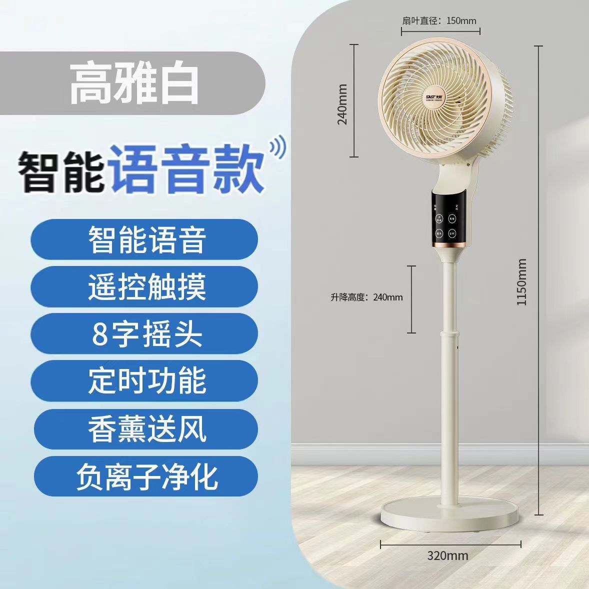 [white smart] interactive voice response + free remote control + 1.1-meter height extension + antibacterial fan blades + 8-character head shaking