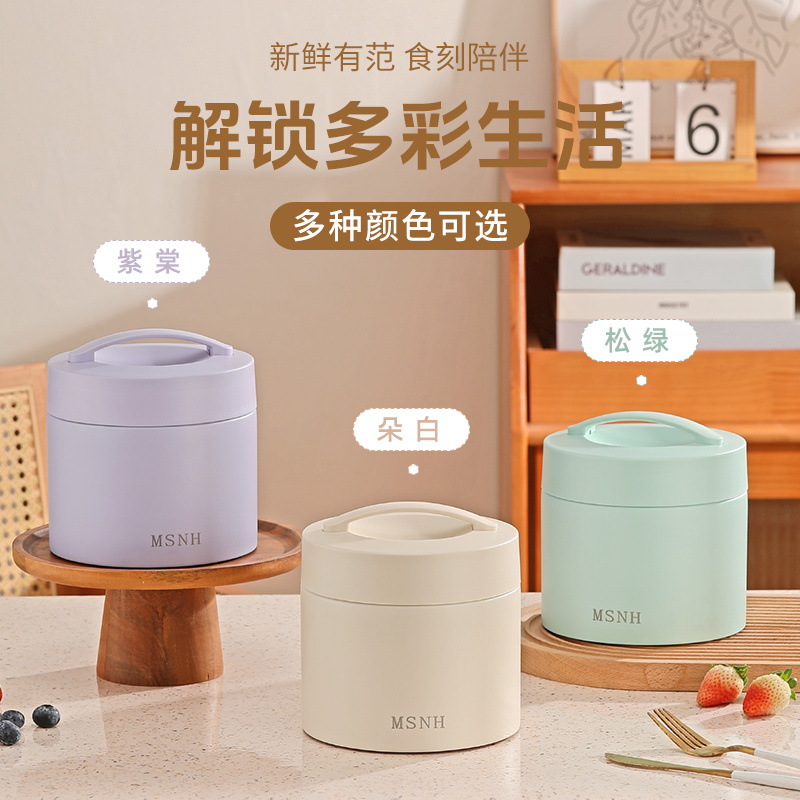 304 stainless steel vacuum thermal lunch box multi-color double-layer anti-leak portable pan student office worker's portable bento box