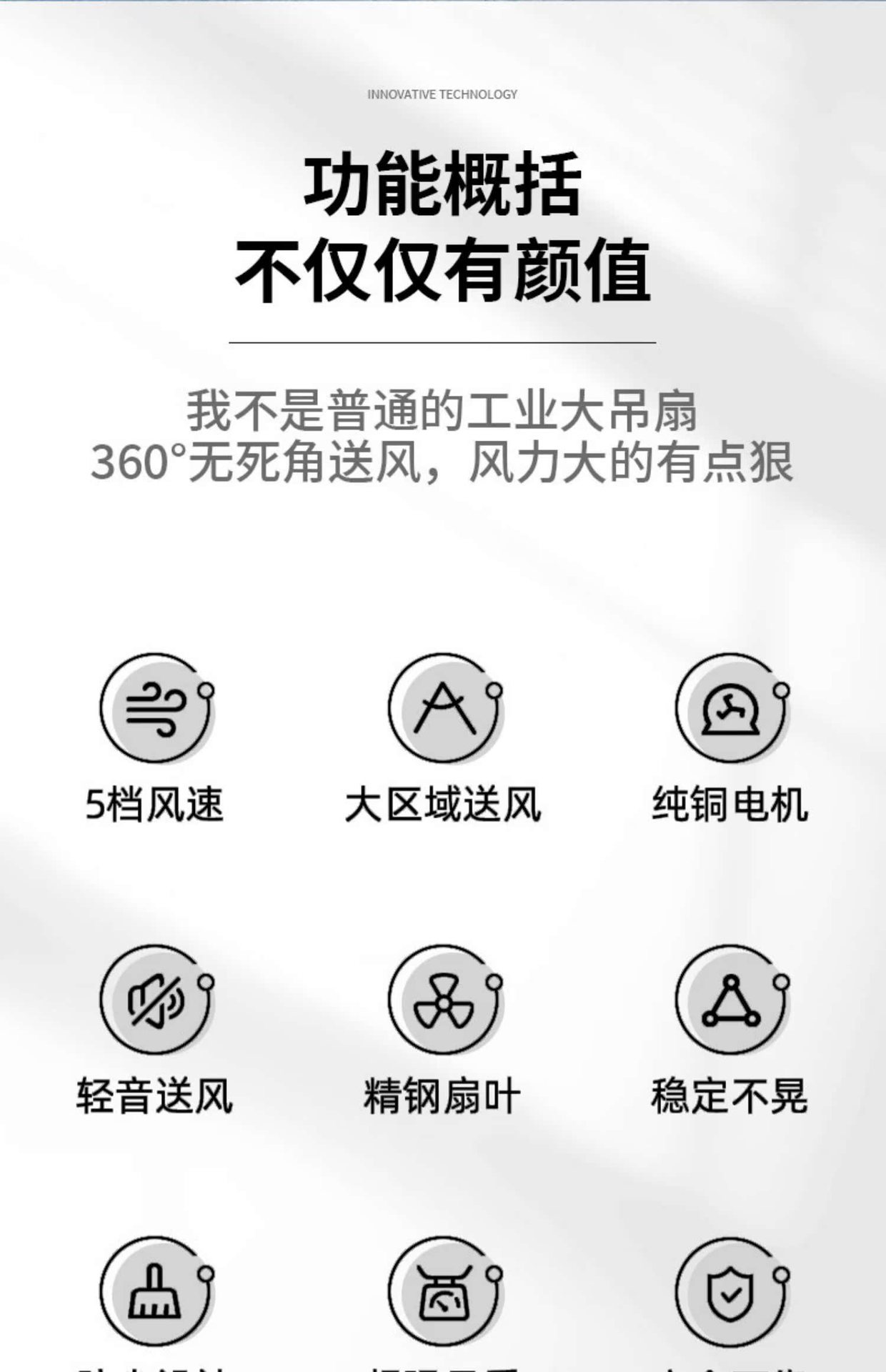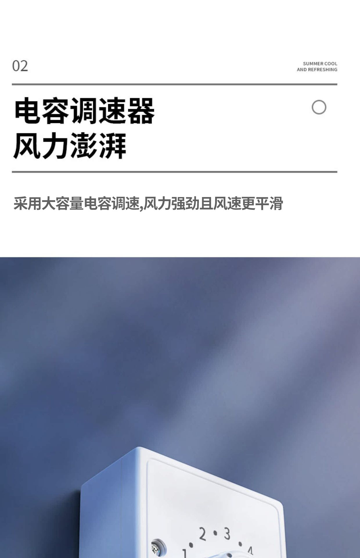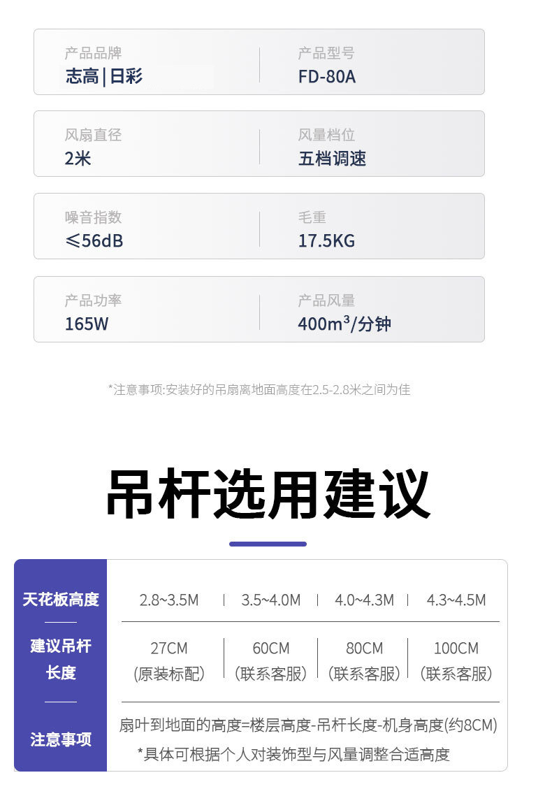 white, 2.5-meter diameter, stepless speed control