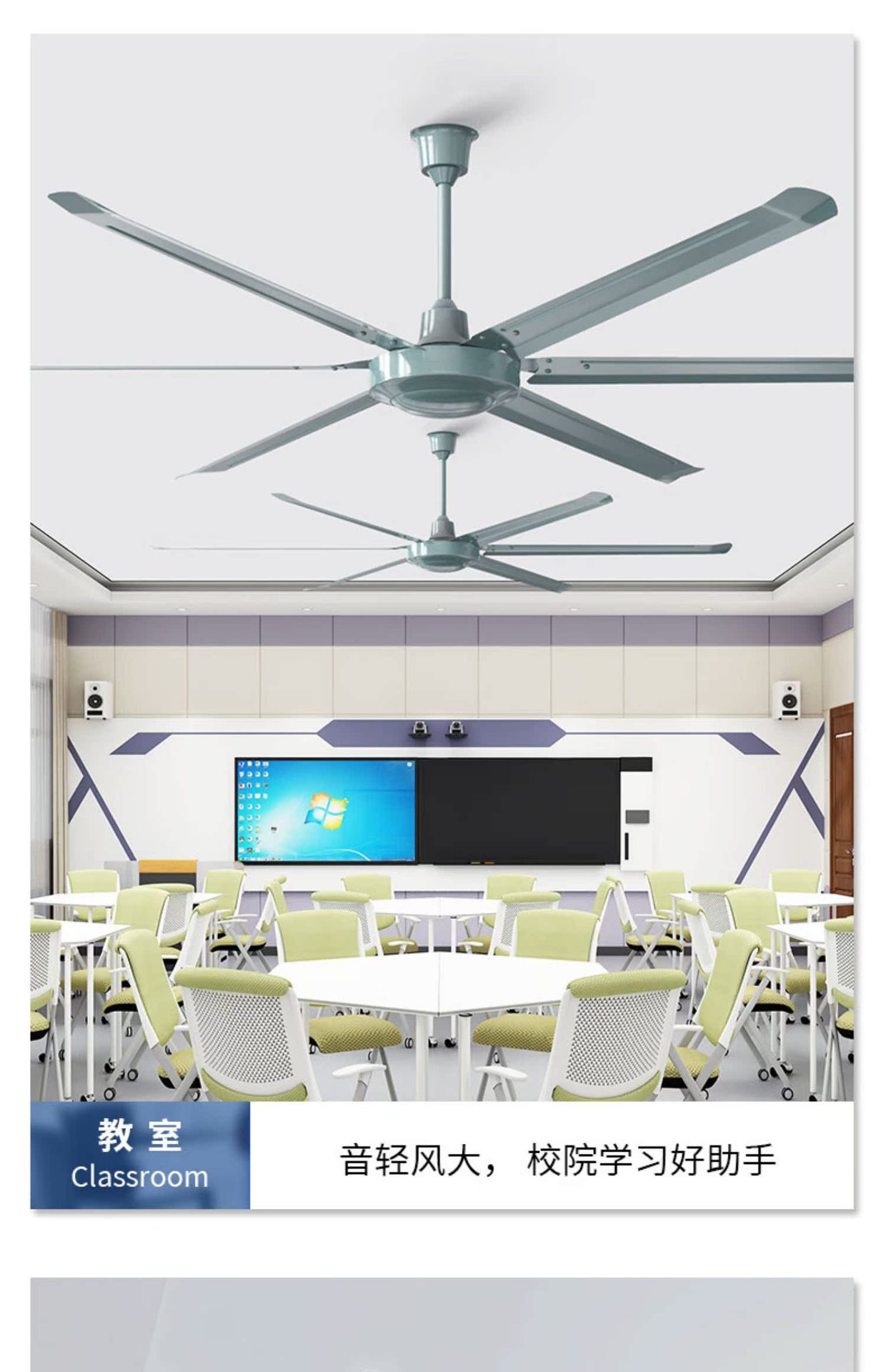 white, 2-meter diameter, stepless speed control