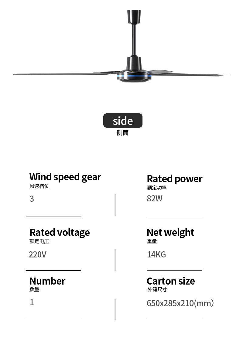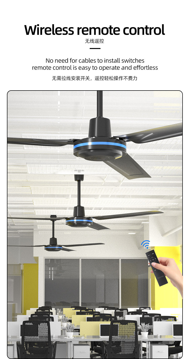 56-inch, 3-speed, black remote-controlled, 220v, single unit package