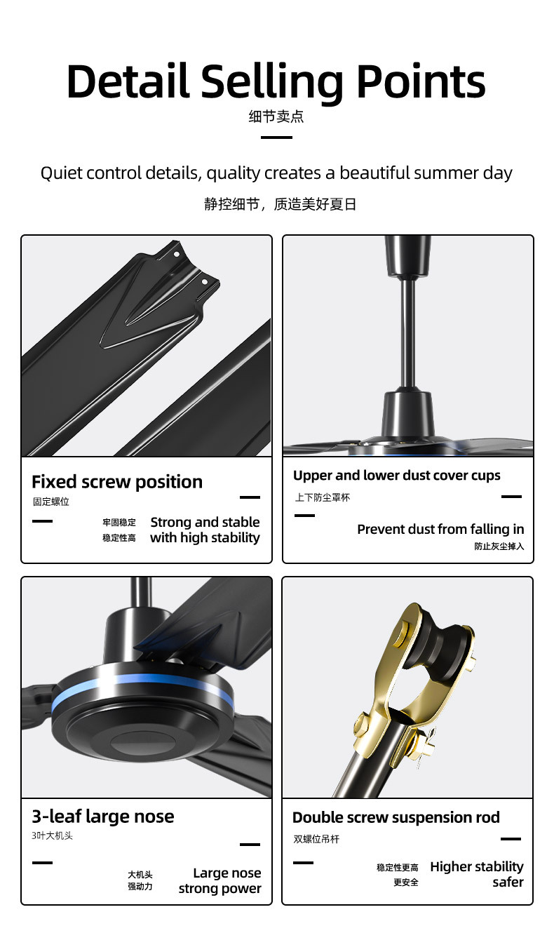 56-inch, 3-speed, black remote-controlled, 220v, set of three