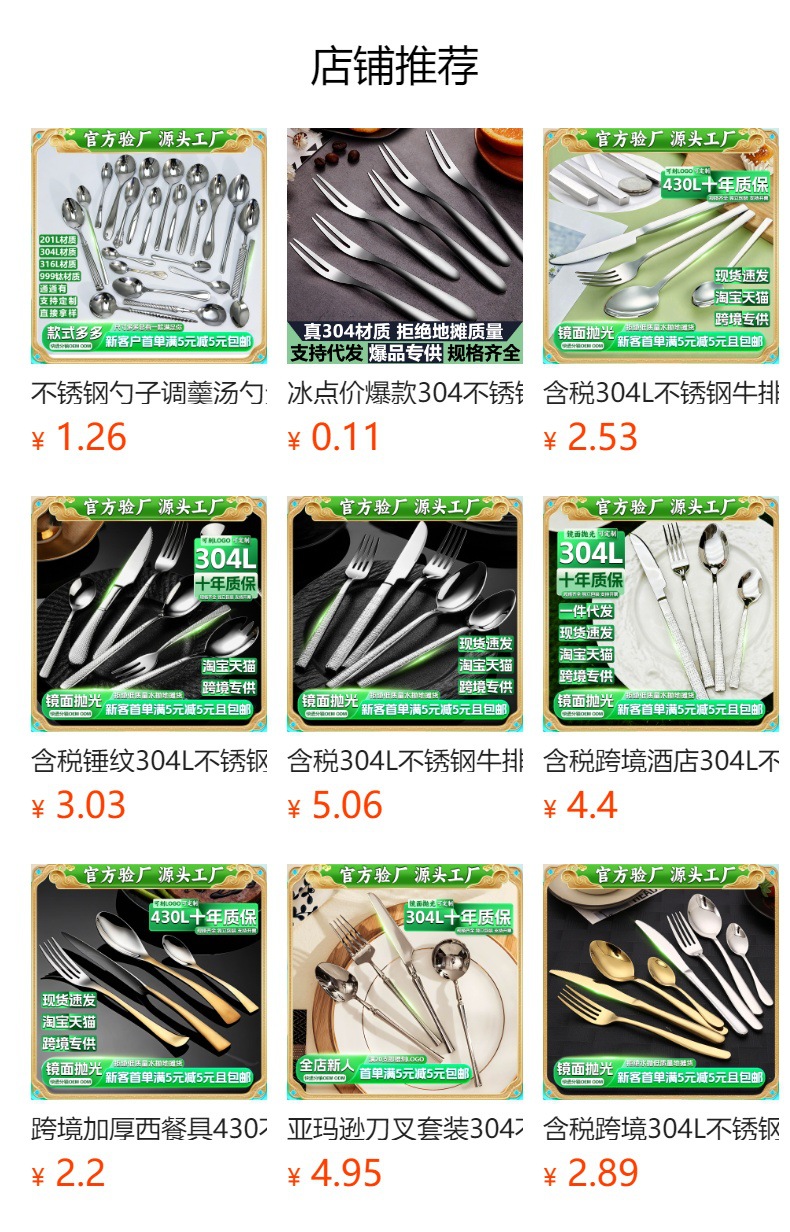 | korean-style all-gold spoon 304 (tax included) | CN¥ 2.04 |