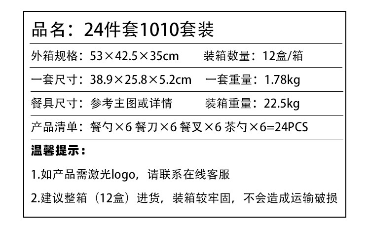 | 304 1010 silver 24-piece gift box (tax-included price) | CN¥ 80.96 |