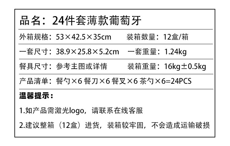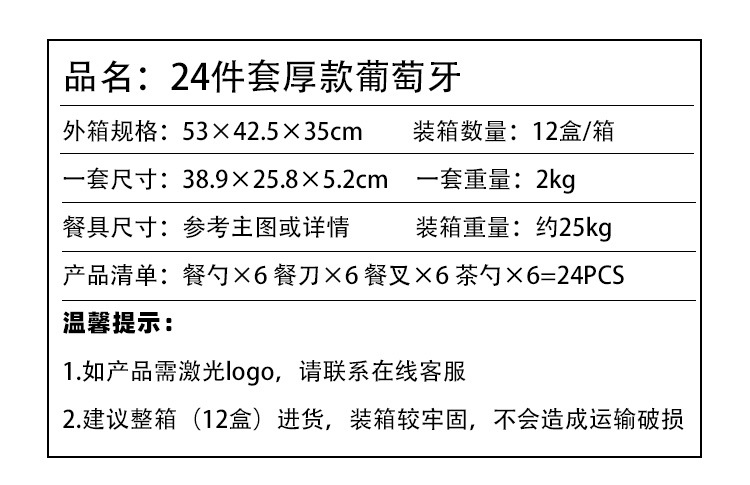 18800 portugal 304 (thick) golden 24-piece gift box (tax-included price)