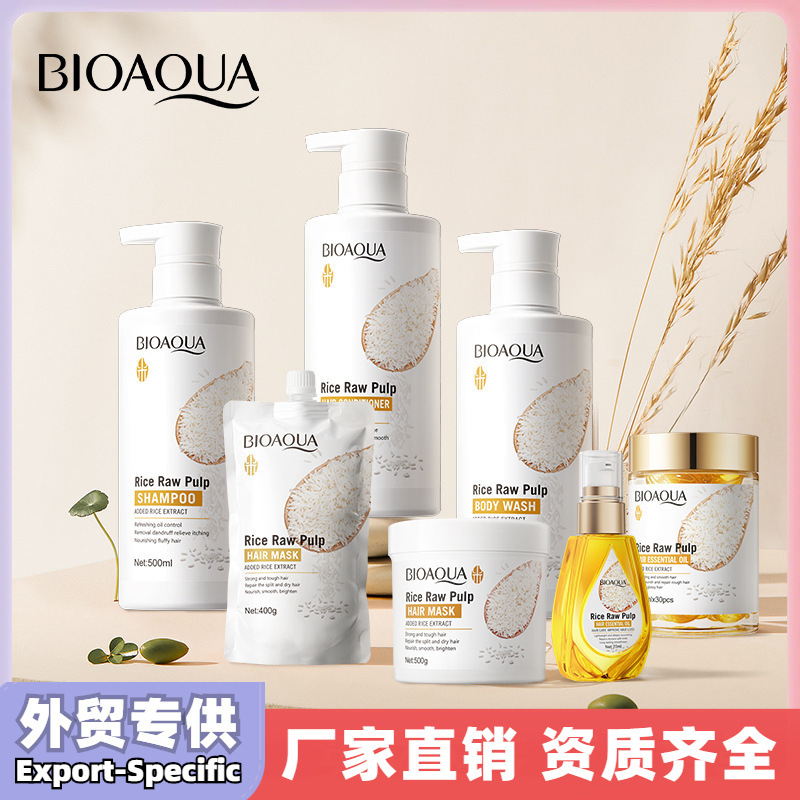 NO.BQY79713 BIOAOUA Rice Original Pore-Filling Moisturizing Set (Foreign Version) 100g + 15ml + 120ml + 120ml + 50g + 20g