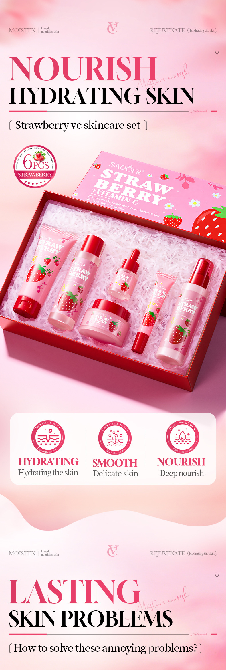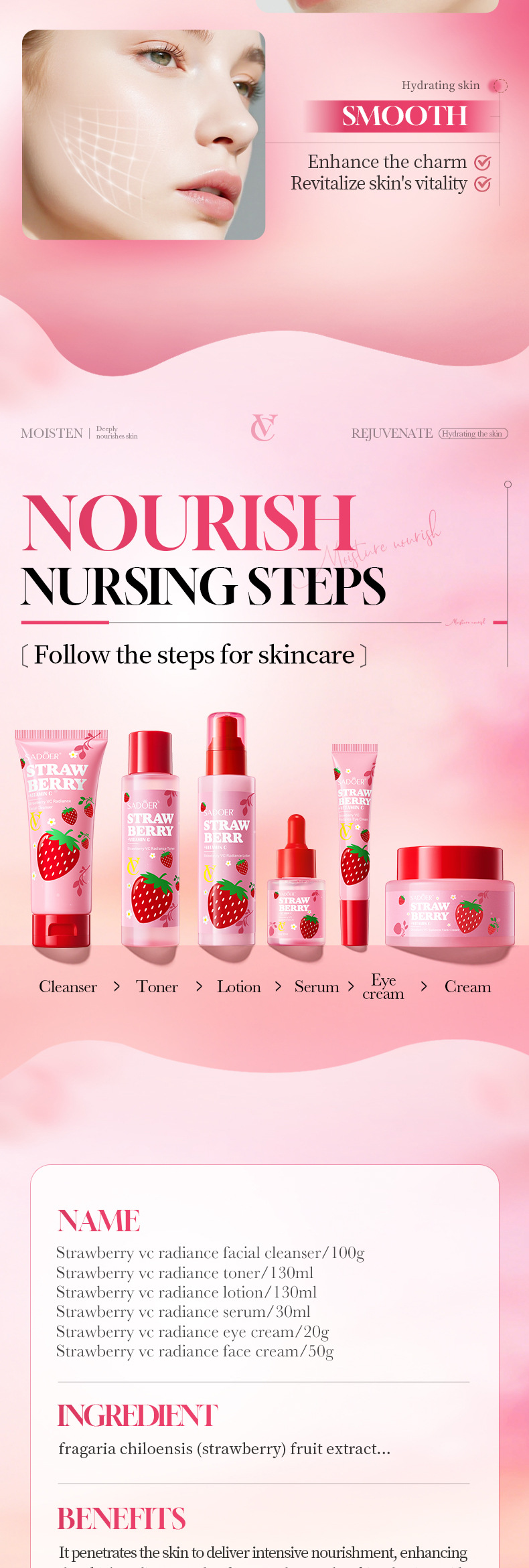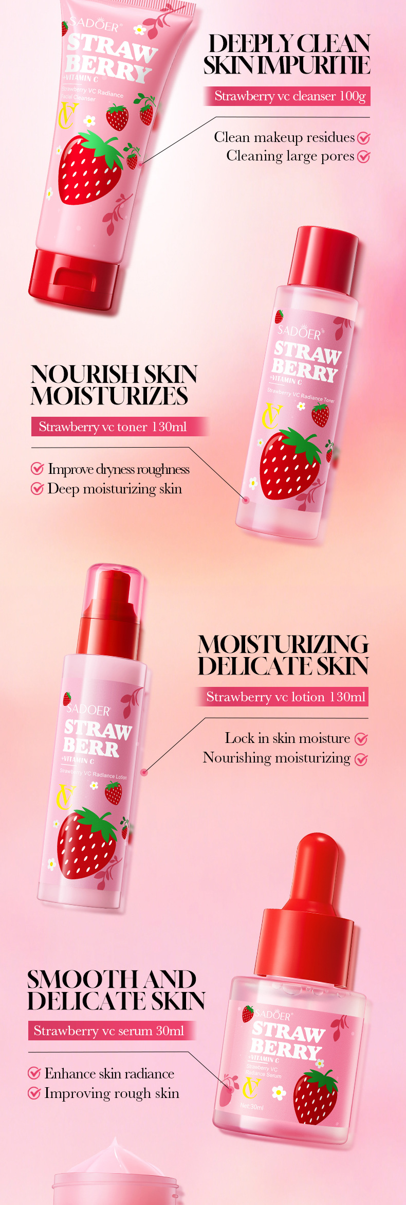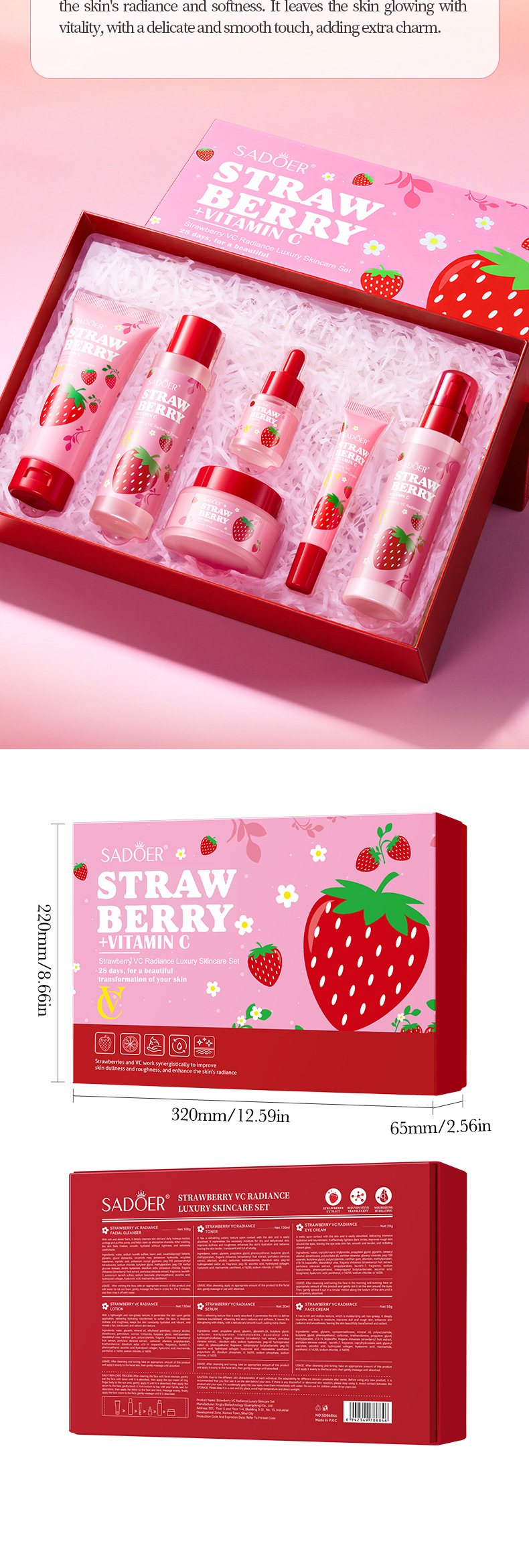 product name: sadoer strawberry vc brightening luxury protection set (foreign language version