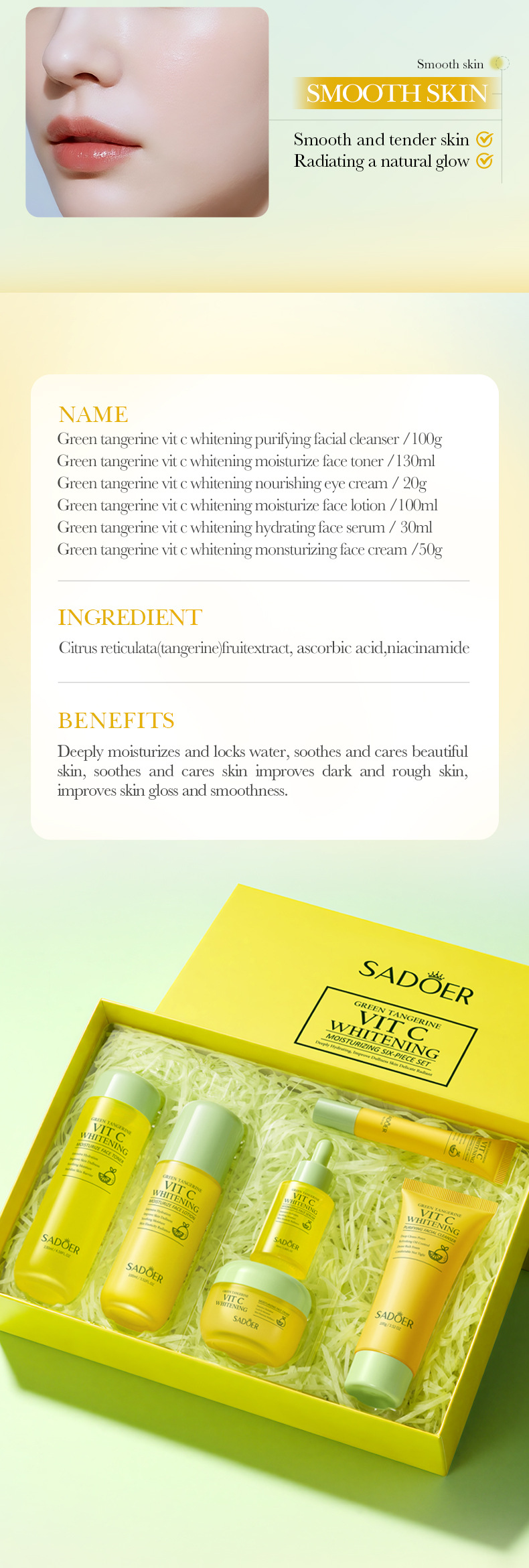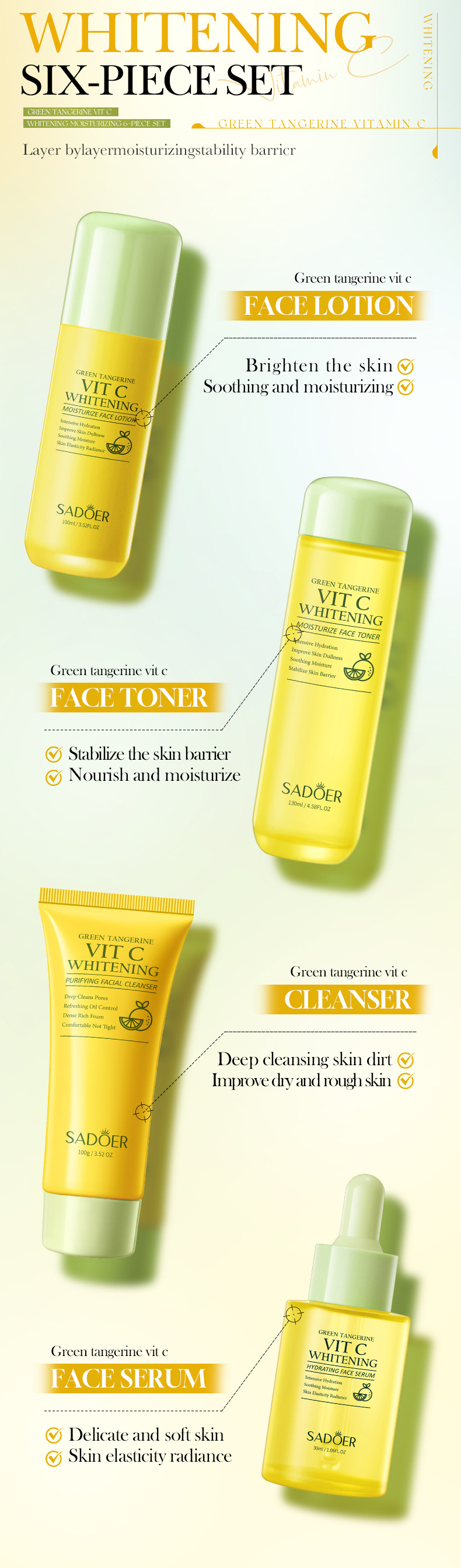 product name: sadoer green orange vc white moisturizing six-piece set (foreign language