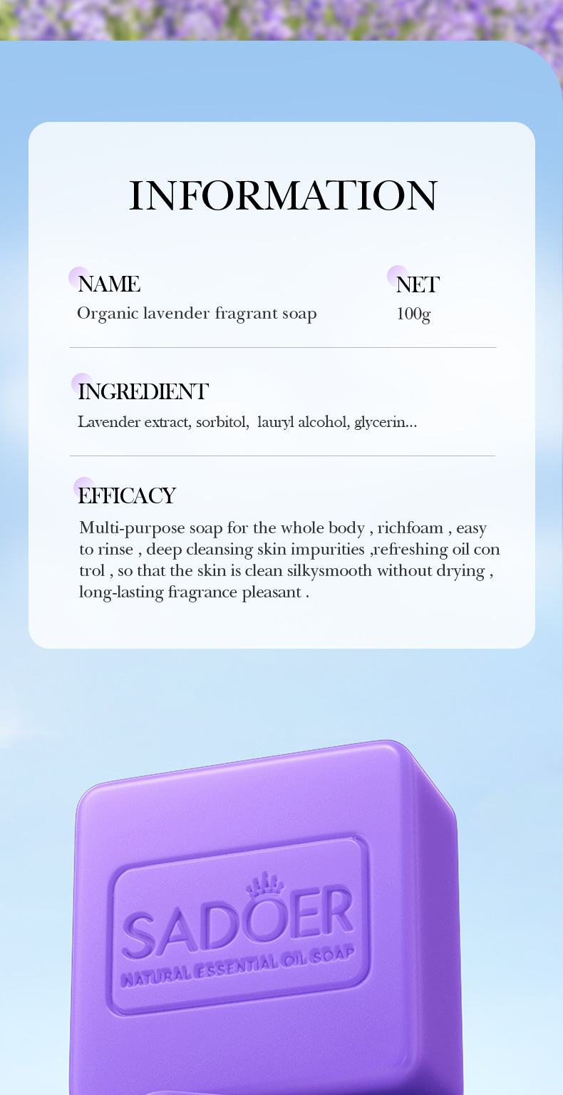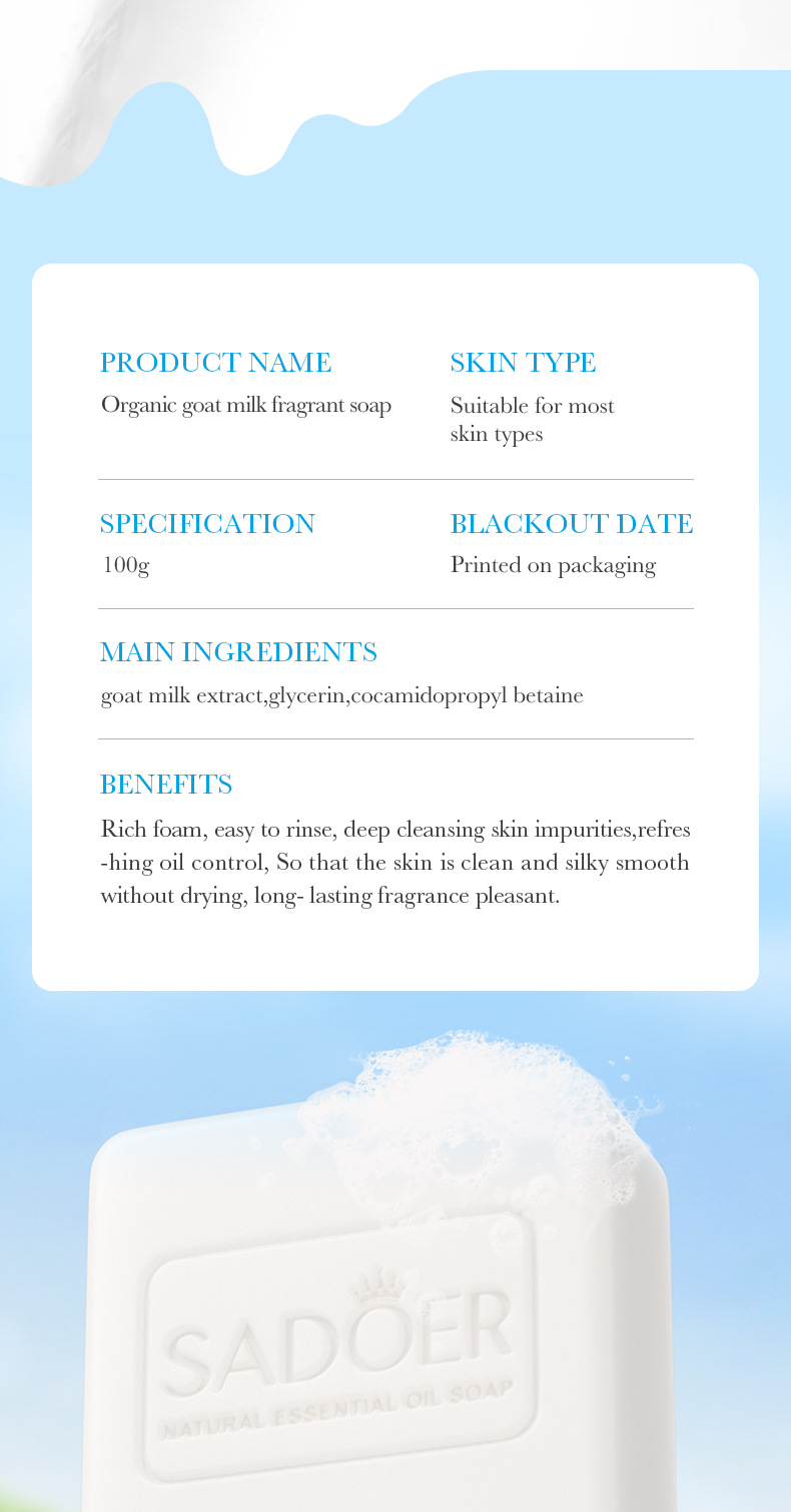 product name: sadoer goat's milk essential oil soap (foreign language version) 100