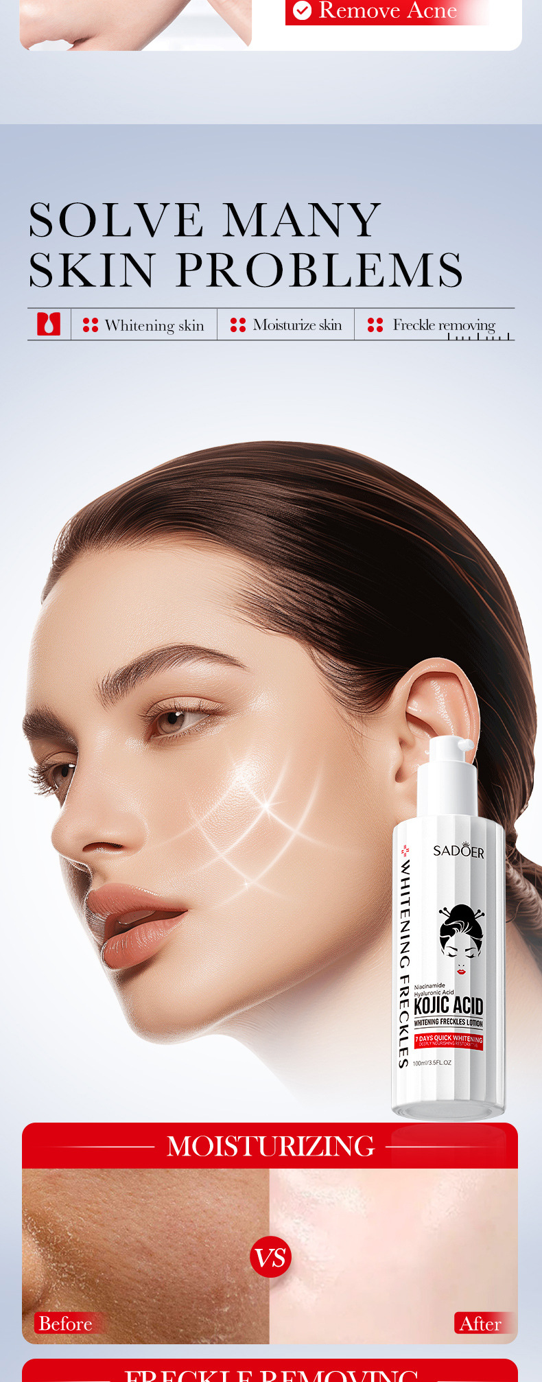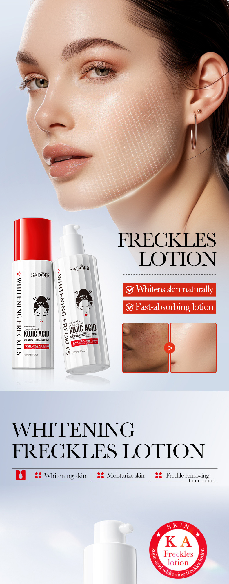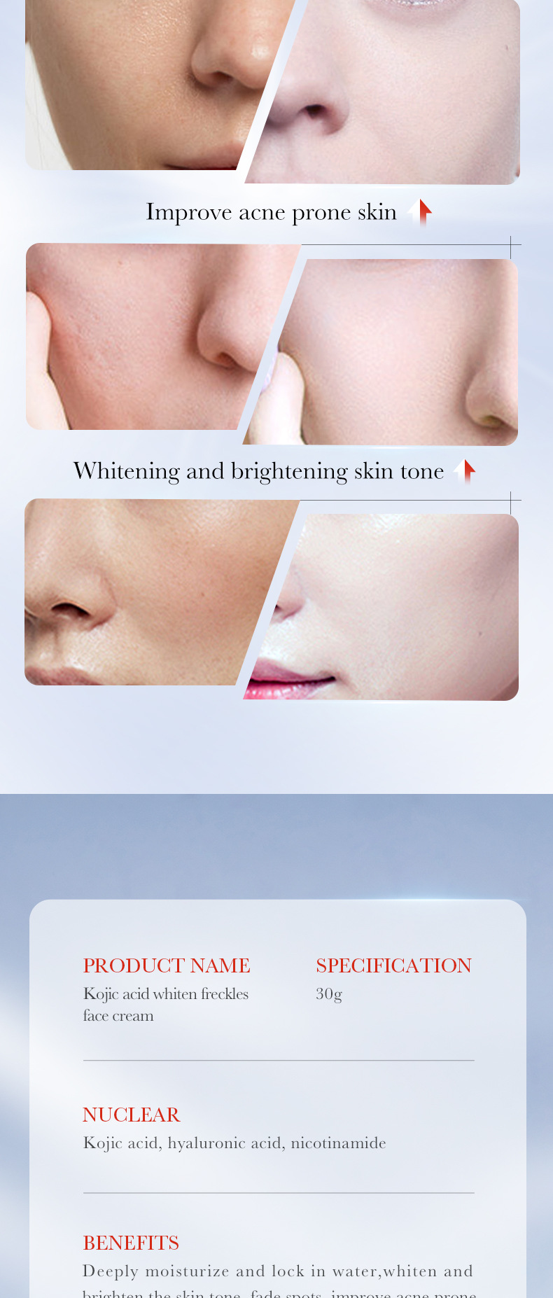 product specifications: freckle cream 30g [for foreign trade sales only], facial cleanser 10