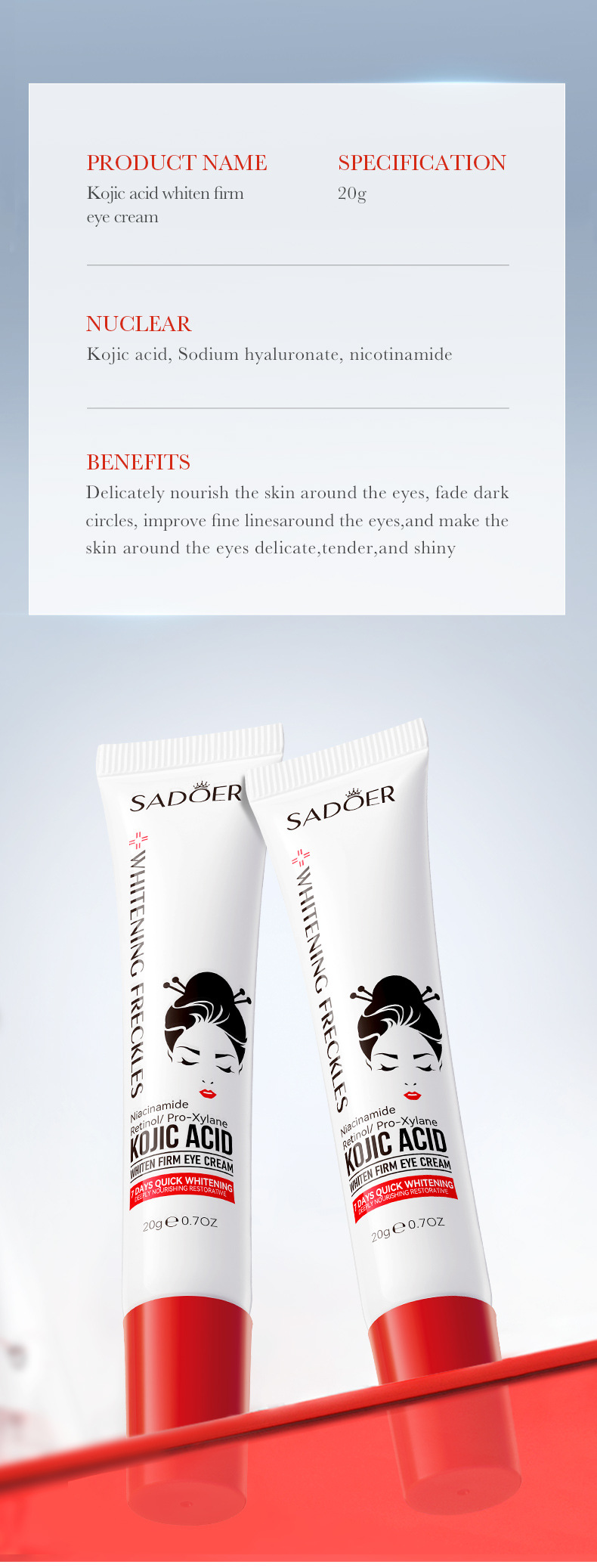 product name: sadoer kojic acid whiten cream (foreign language version)