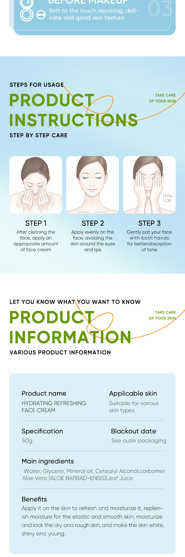 product name: aloe moisturizing refreshing cream