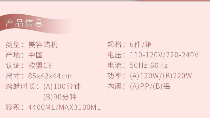 specifications: wax heater