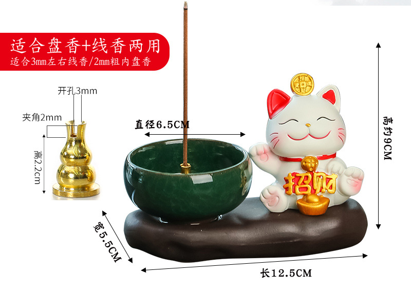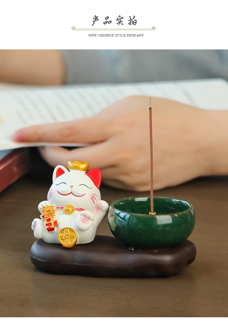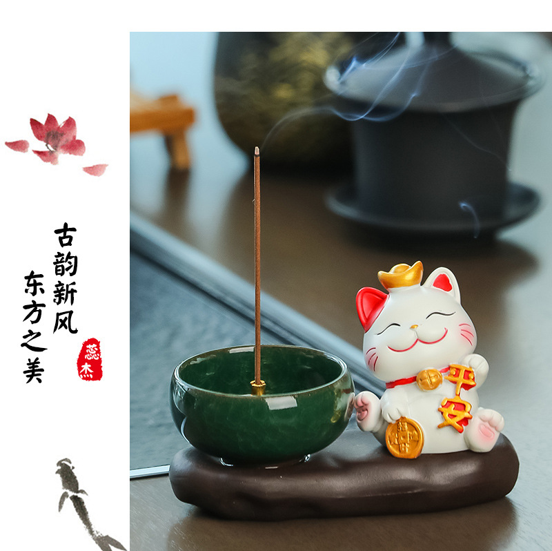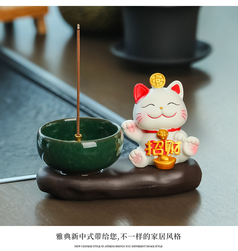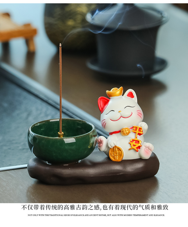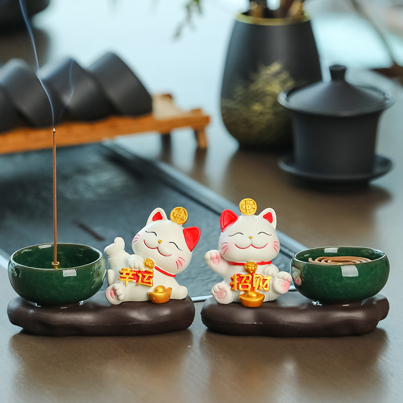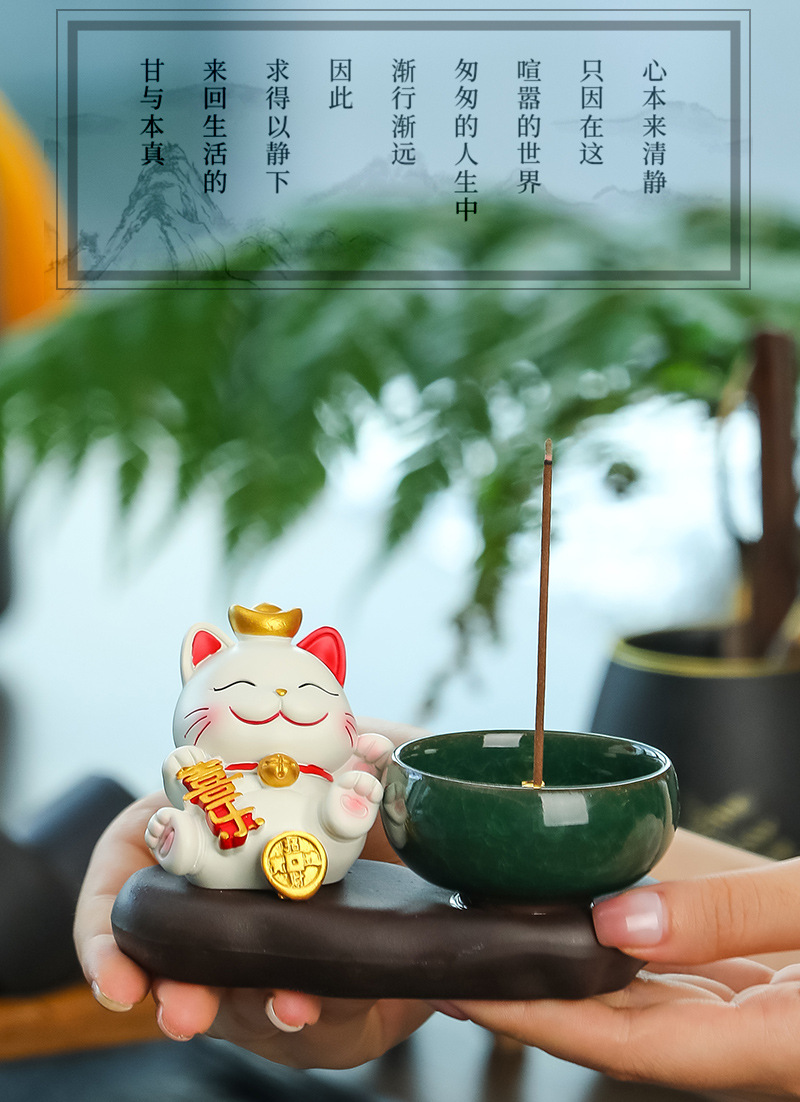 lucky cat zen incense burner [attract wealth & fortune]