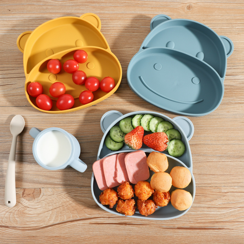 2023 new ins hippo baby silicone plate baby sucker solid food bowl children's grid feeding tableware price