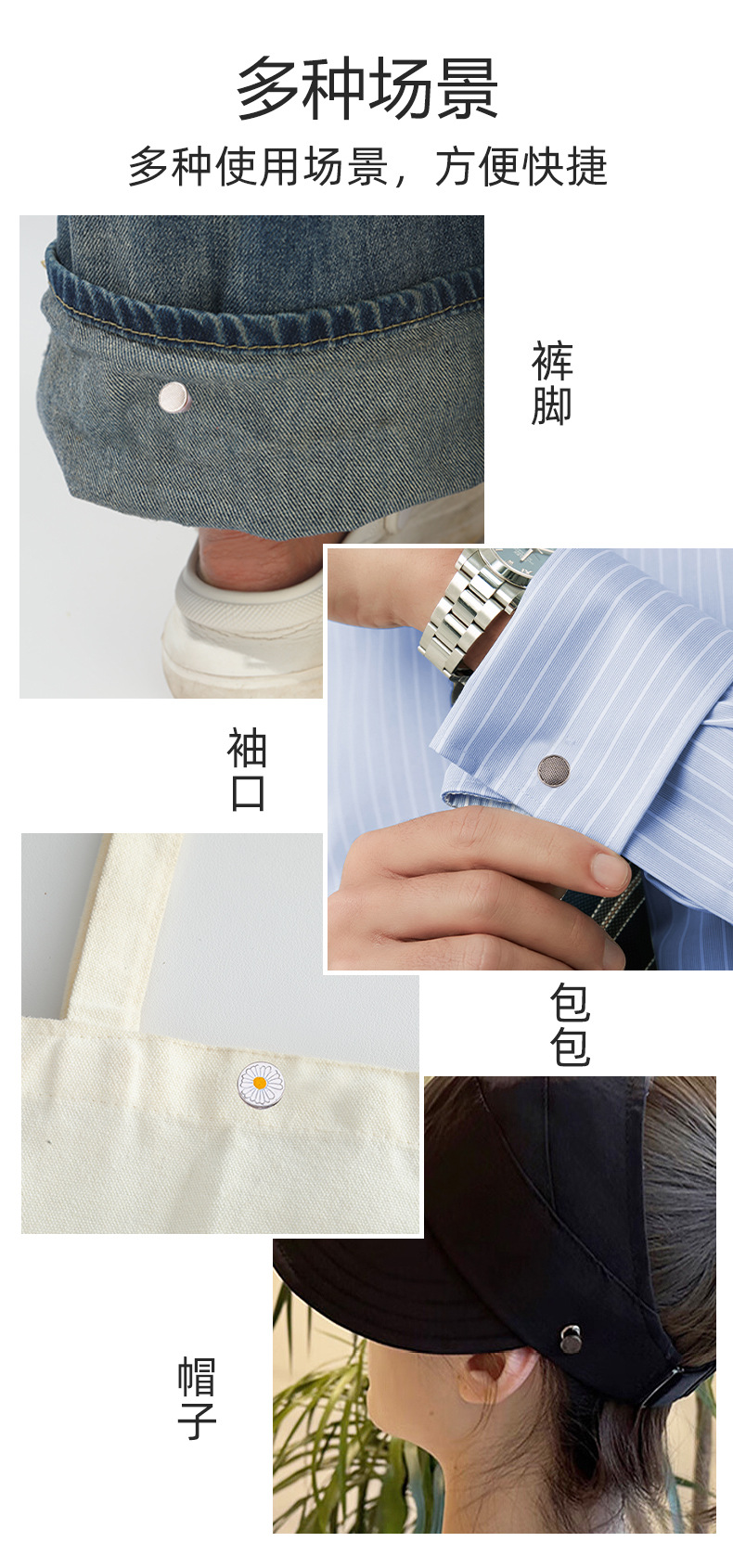 cufflinks, detachable and adjustable, universal multifunctional tool for bag hat, metal buttons, flat-bottomed nail-free buttons.