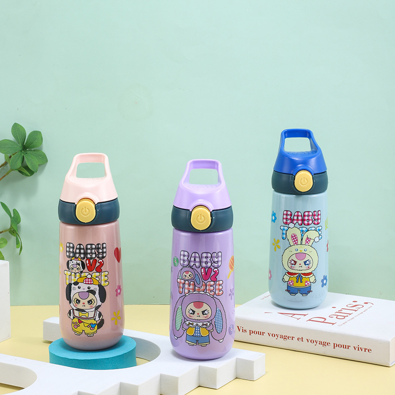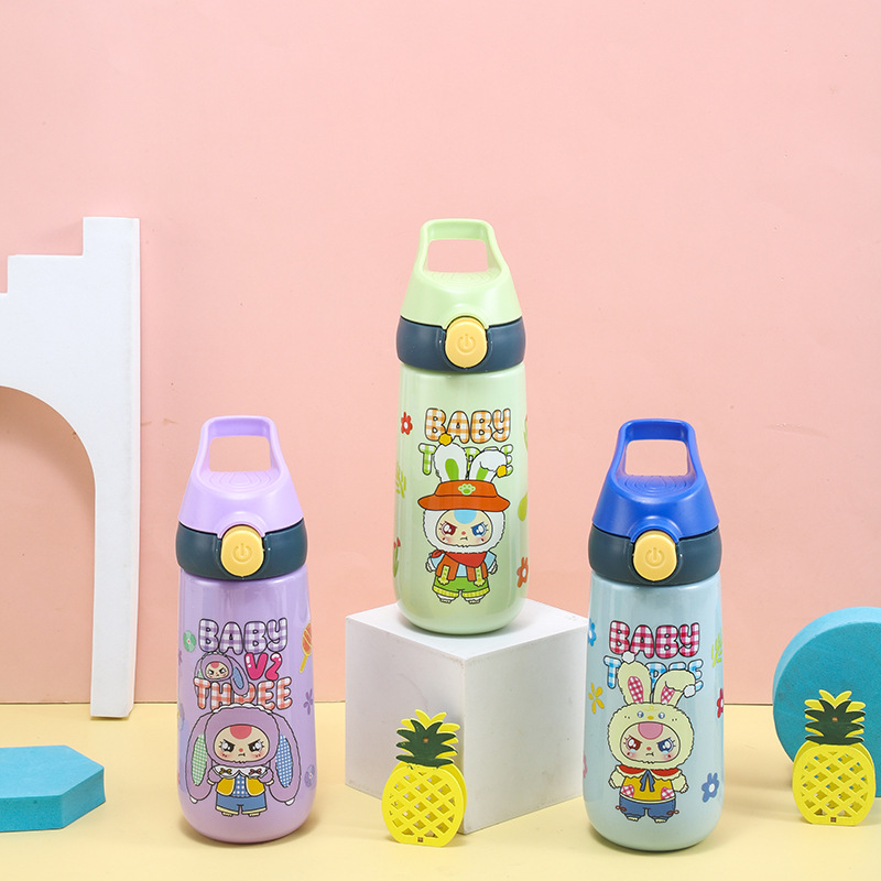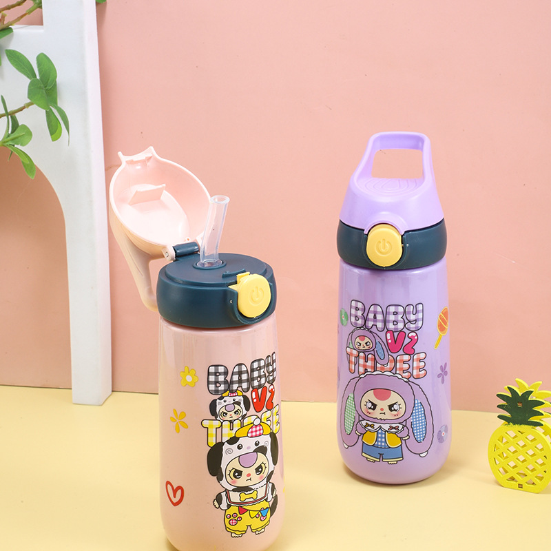 baby three years old children's cups solid color summer school straw style cup water bottle drop-resistant student good-looking plastic cup
