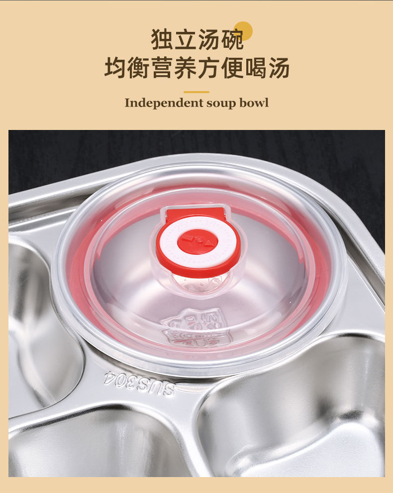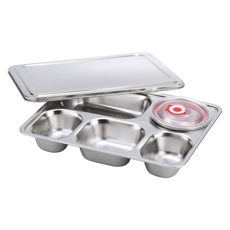 square (large) five-compartment tray with bowl and 304 stainless steel lid