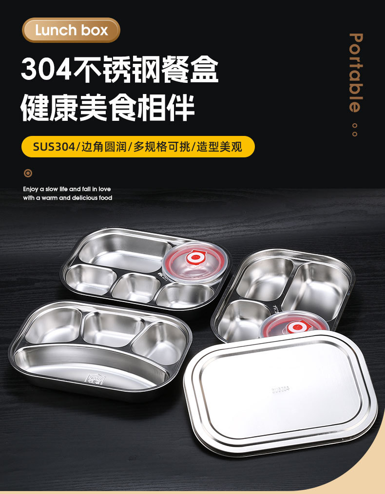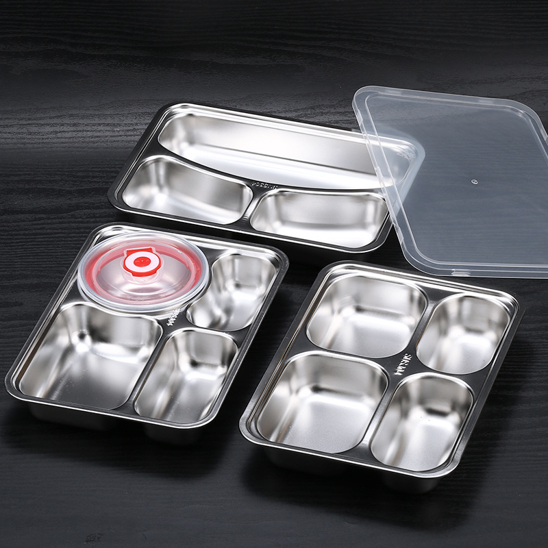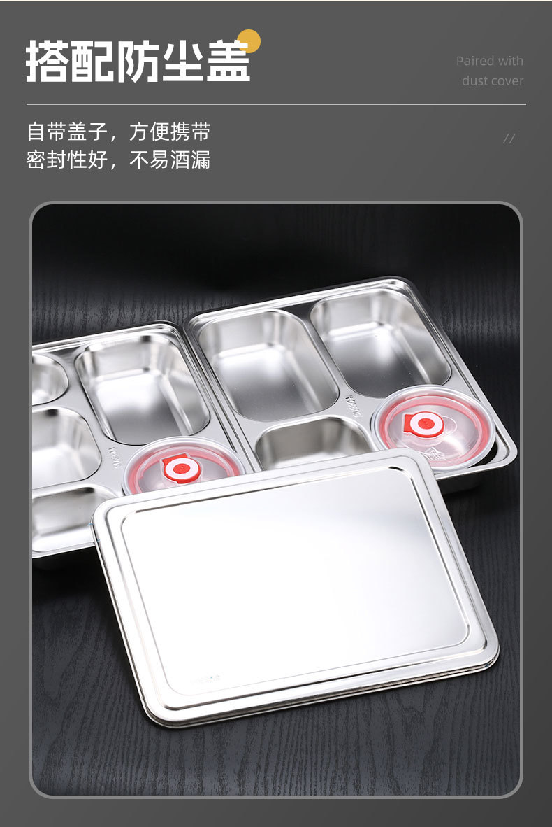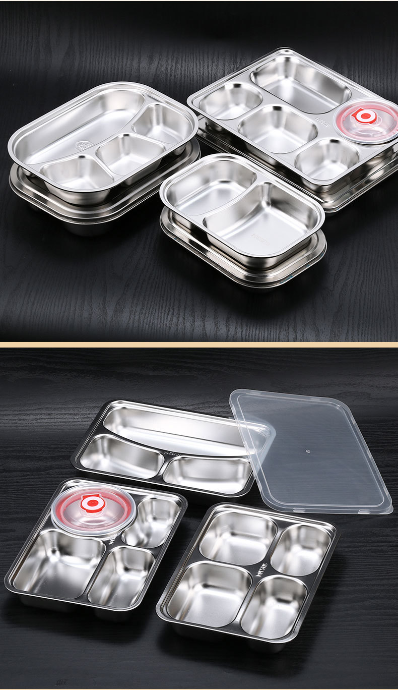 square (large) four-compartment tray with bowl and 304 stainless steel lid