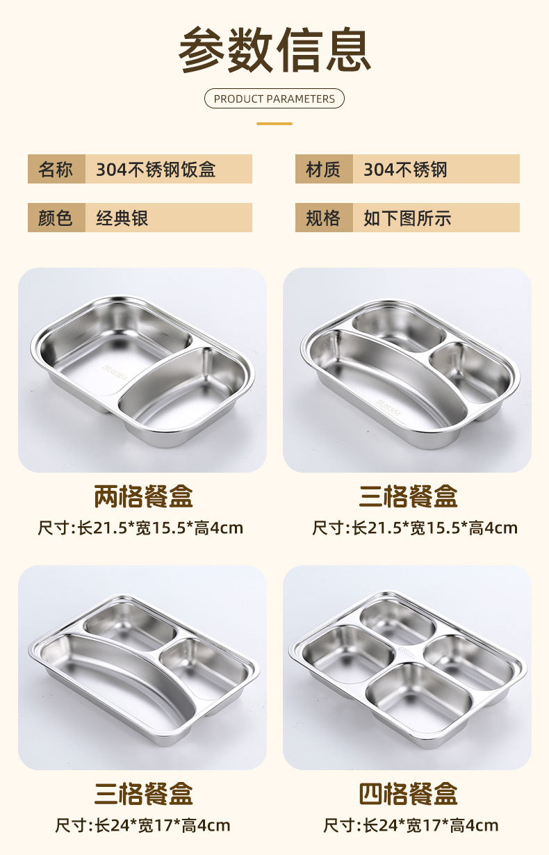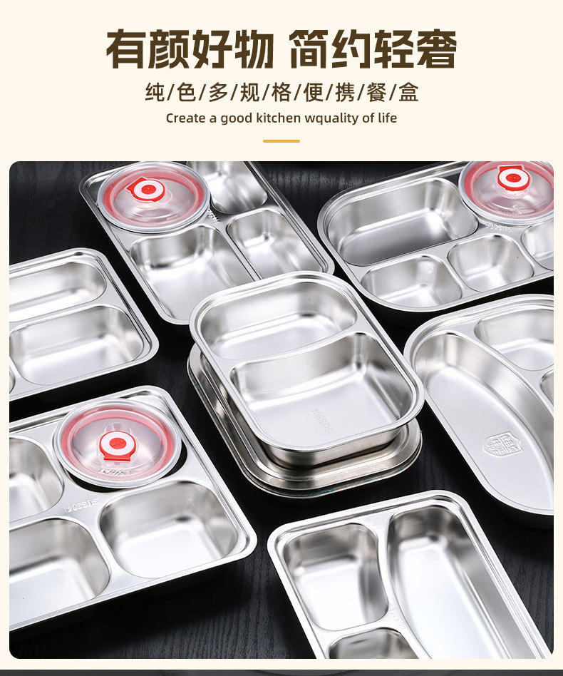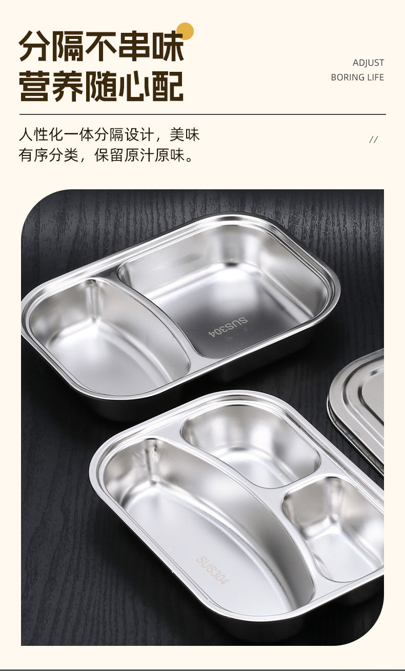 square (large) four-compartment tray with bowl and 304 stainless steel lid