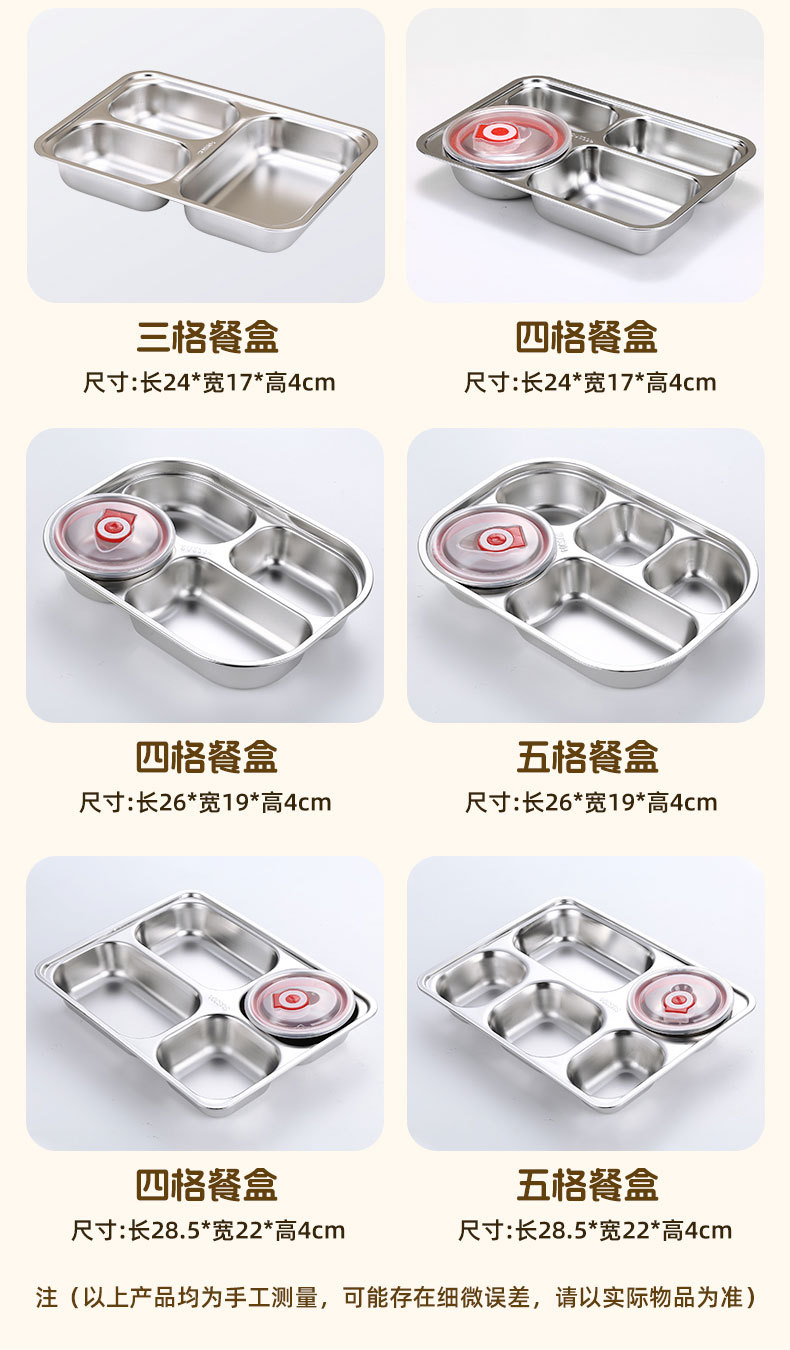 square (small) four-compartment tray with 304 stainless steel lid