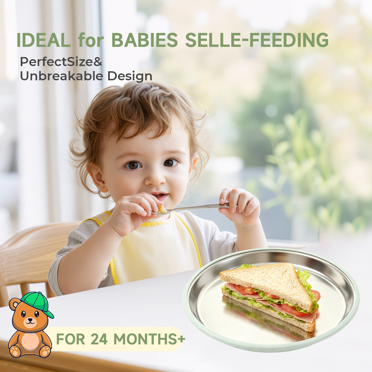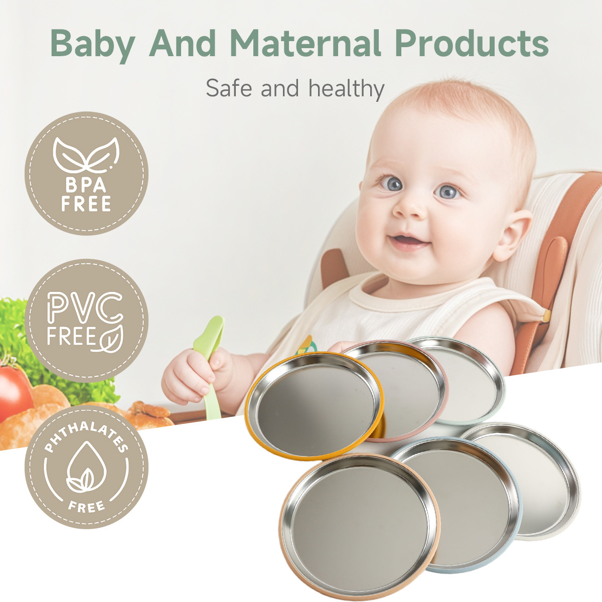 item no.: non-divided stainless steel 304 children's dinner plate with suction cup
