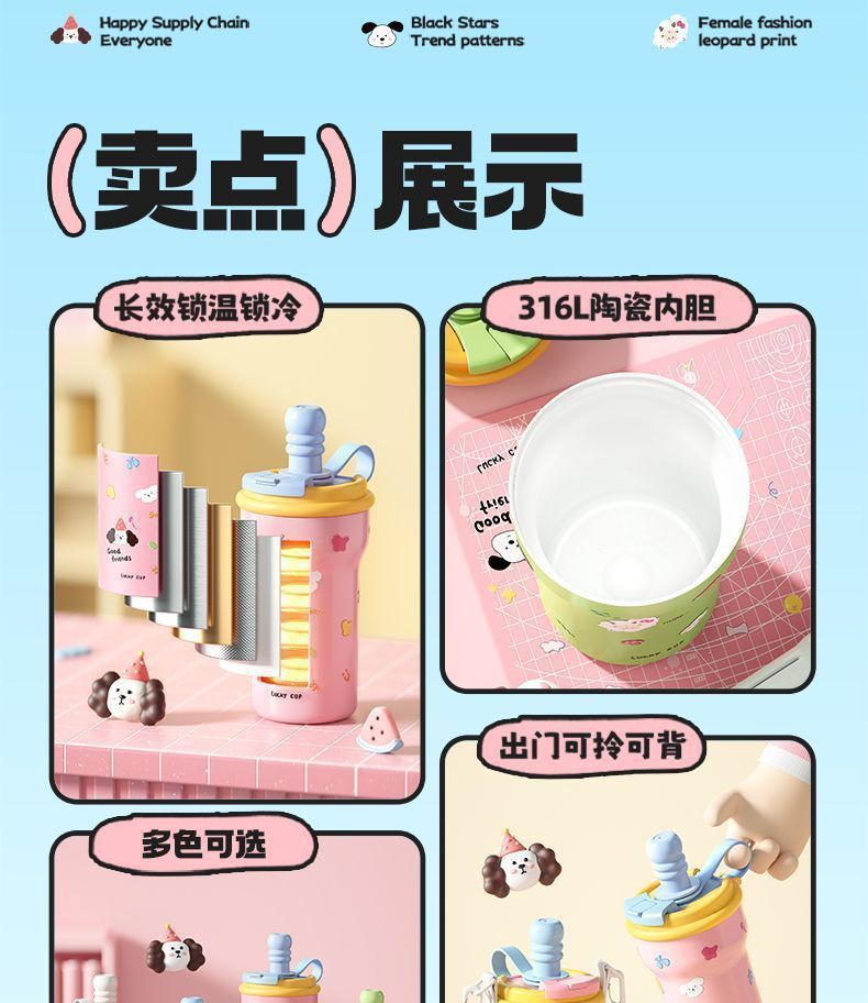 style: with rope handle, large capacity, with straw