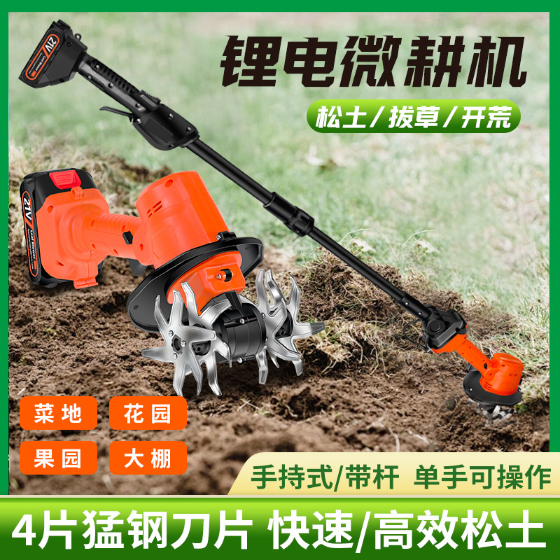 new household lithium battery micro-tiller weed removal soil loosening small tilling machine soil preparation machine handheld electric hoe rotary cultivator