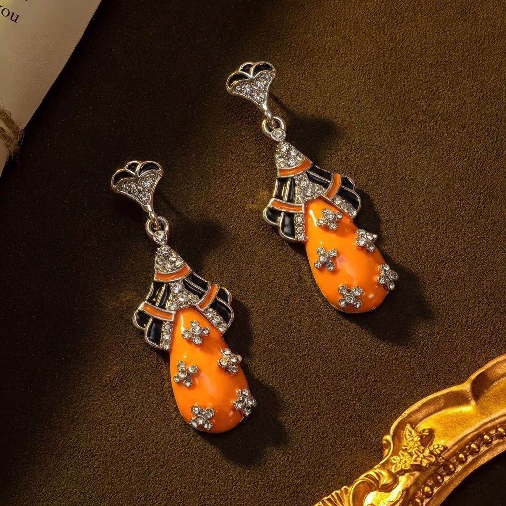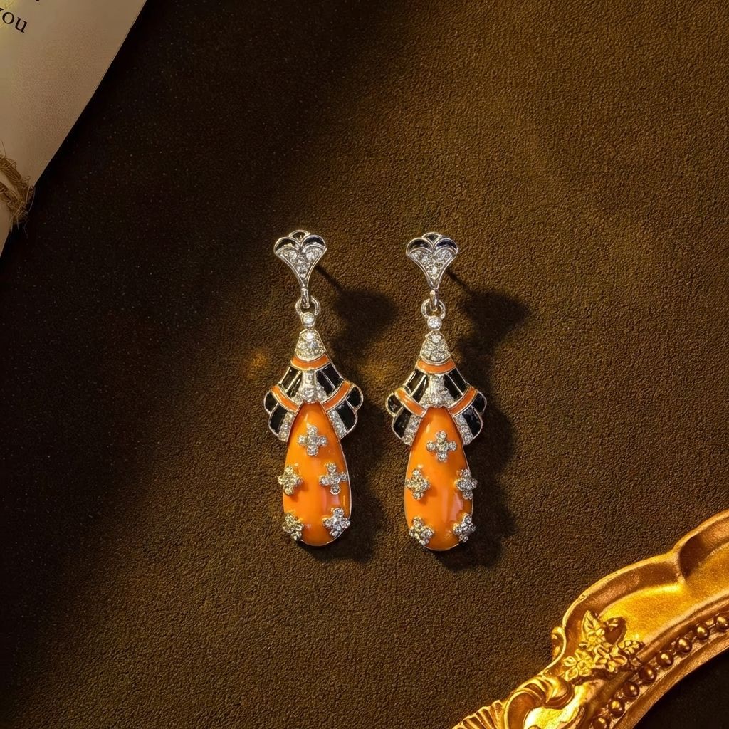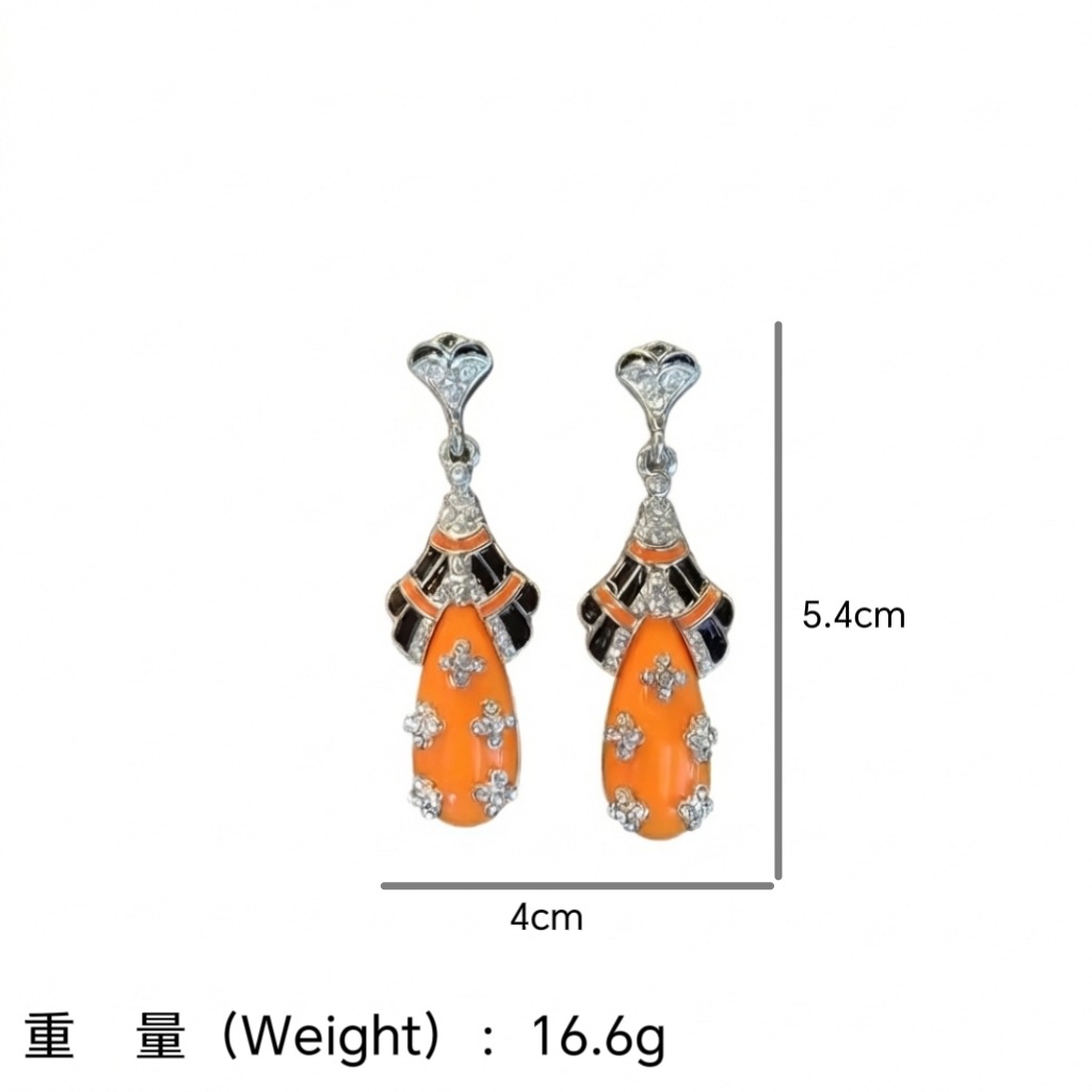 qingdao zhonggu vintage court style enamel water drop earrings light luxury high-grade refined stylish and versatile earrings for women